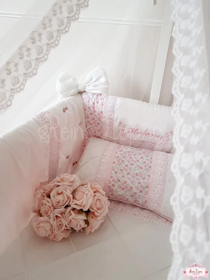 Catre PETIT ROIS sin volados, puntilla de tul, extra bordado rositas