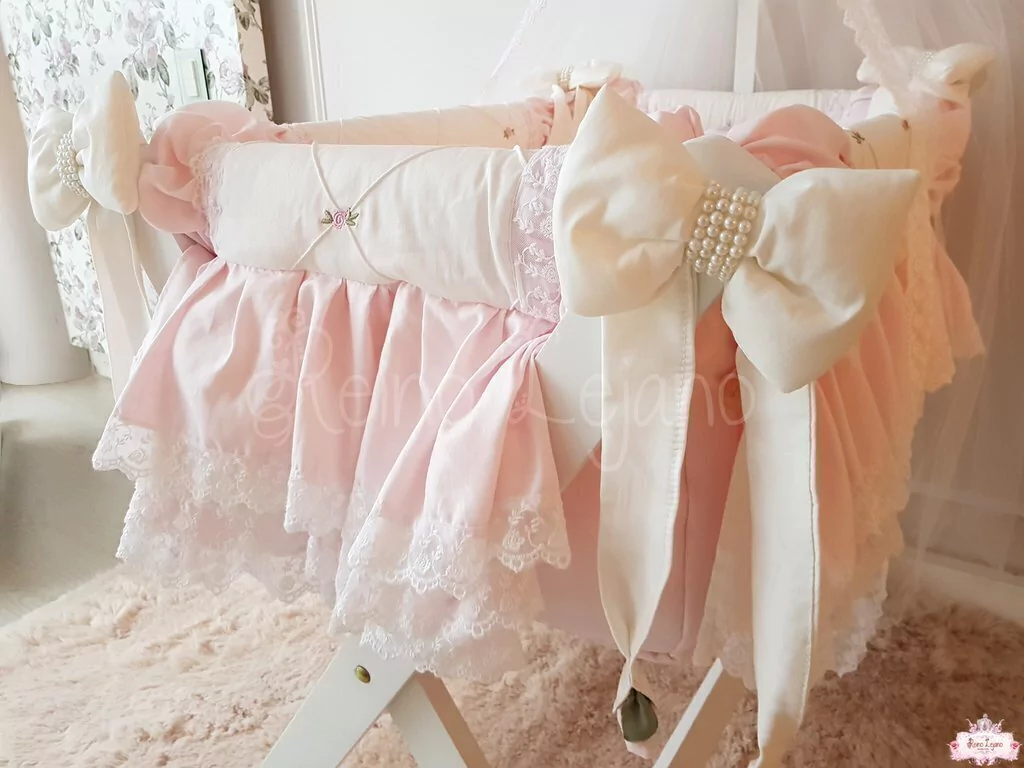 Catre PETIT ROIS volados, puntilla de tul, extra bordado rositas, drapeados