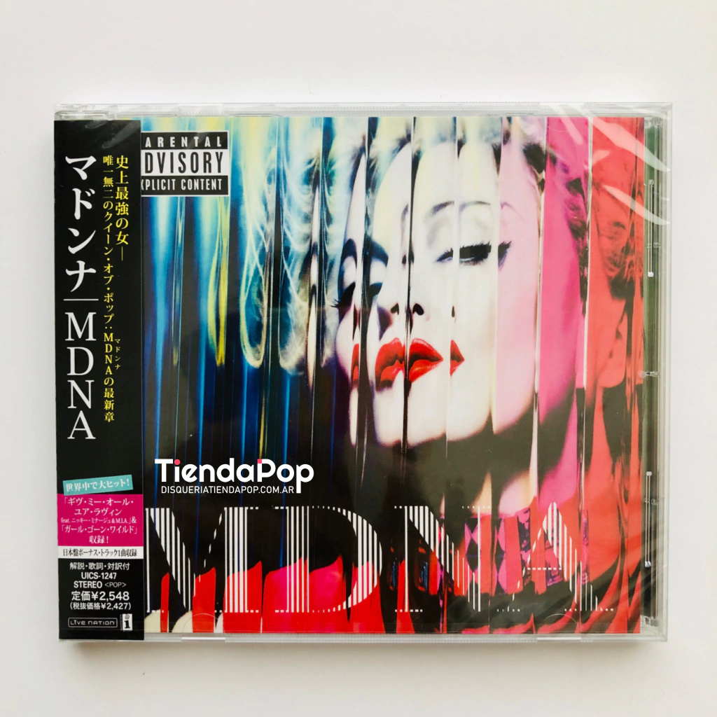 MadonnaMdnaDeluxe EditionBonus TrackJaponCONTENDIO:*CD AUDIO 18 TEMAS*+1 BONUS TRACK EXCLUSIVOS PARA JAPON*OBI STRIP*LIBRETO ADICIONAL CON LETRASLISTA DE TEMAS:1.- GIRL GONE WILD2.- GAND BANG3.- I'M ADDICTED4.- TURN UP THE RADIO5.- GIVE ME ALL YOU LUVIN'6.- SOME GIRLS7.- SUPER STAR8.- I DON'T GIVE A9.- I'M A SINNER10.- LOVE SPENT11.- MASTERPIECE12.- FALLING FREE*DELUXE BONUS TRACKS13.- BEAUTIFUL KILLER14.- IF**KED UP15.- B-DAY SONG16.- BEST FRIEND17.- GIVE ME ALL YOU LUVIN' - PARTY ROCK REMIX*BONUS JAPAN REMIX TRACK18.- GIRL GONE WILD - JUSTIN COGNITO REMIX
