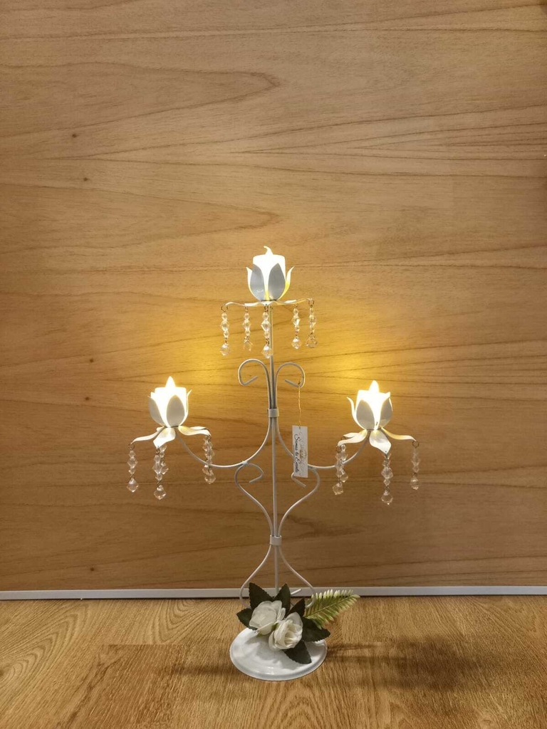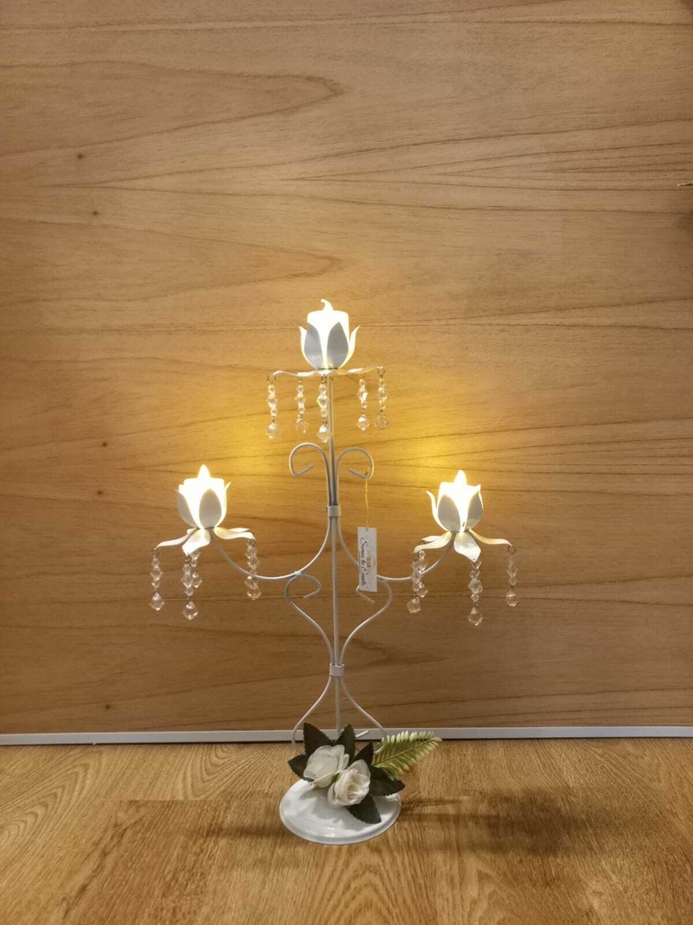 Centro De Mesa CANDELABRO CAIRELES 50cm aprox incluye caireles y flores en la base.