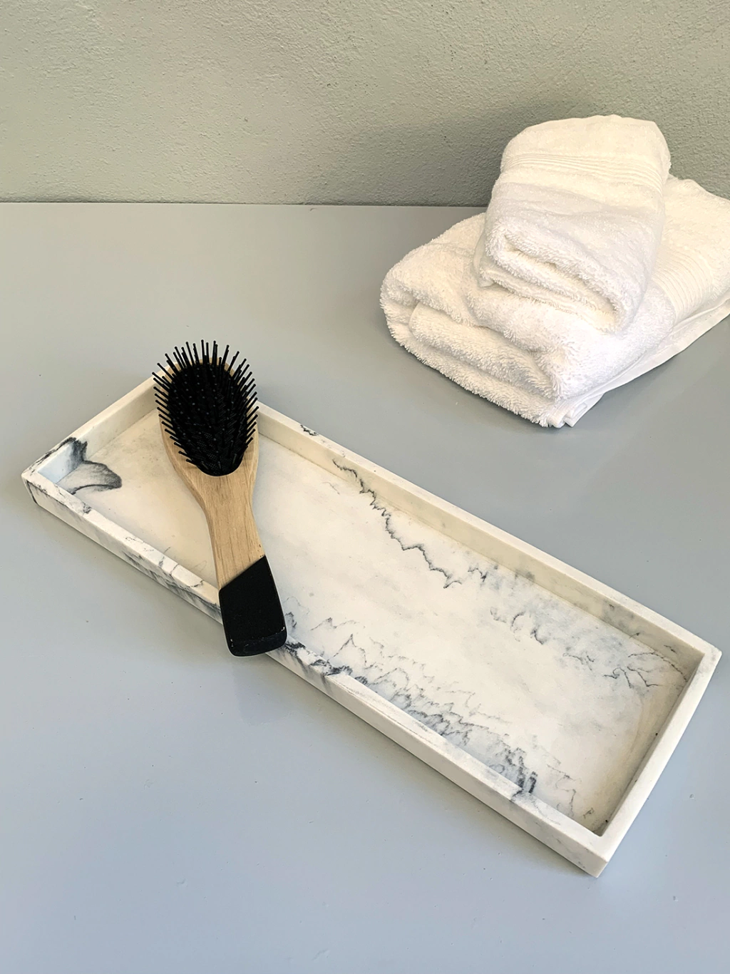 Cepillo de madera con franja negra.