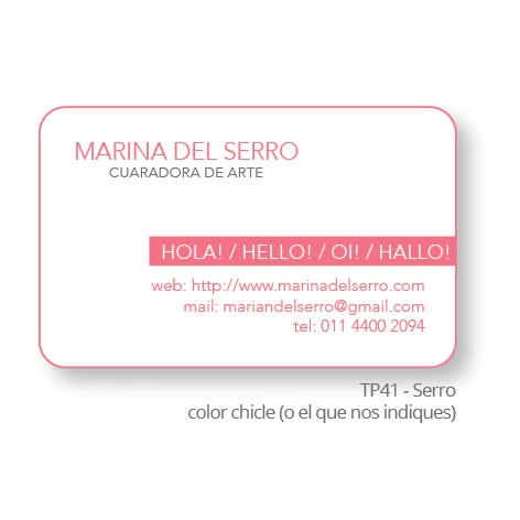TARJETAS PERSONALESDejá siempre la mejor impresión.IMPORTANTE: luego de recibir tu pedido te enviaremos por mail el diseño personalizado para que puedas controlar los textos y confirmar la impresión.-Medida:9x5cm-Papel:Imprimimos las tarjetas en cartulinas bien gruesas. Podés elegir la que más te guste en en menú "Cartulina".-Nombre y datos para personalizar:lo indicás al final de la compra en un recuadro que te pediremos que completes con los "Datos para personalizar tu pedido". Si querés hacer alguna aclaración podés hacerla allí mismo. Si nos falta alguna información te la solicitaremos por mail luego de recibir tu pedido.-Tiempo para retiro o entrega:luego de que contamos con el pago y con el diseño que enviamos por mail aprobado por el cliente - 1) en 2 días hábiles retirás por el Taller de Recoleta / 2) lo despachamos a los 4 días hábiles (el tiempo de entrega, desde que fue despachado, es de 2 a 10 días hábiles según el destino) / 3) podés retirar por puntos de entrega entre los 4 y 10 días hábiles (dependiendo del día en el que hayas realizado la compra) - Te informaremos por mail la fecha y horario de retiro o te enviaremos el código de seguimiento de tu envío una vez despachado.
