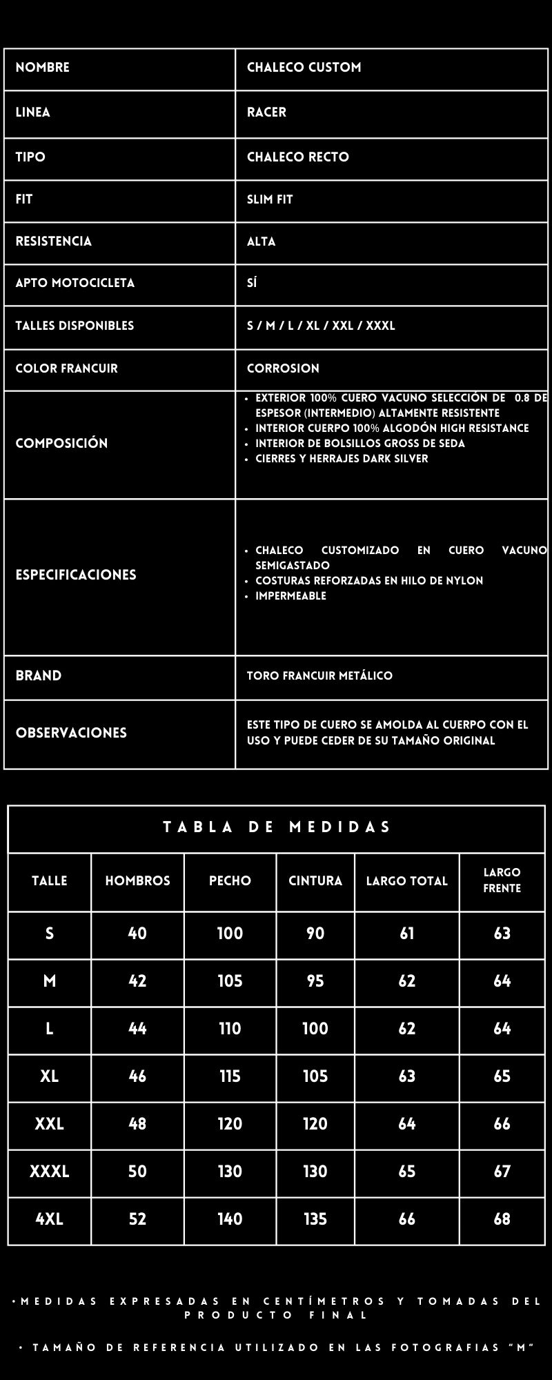 Chaleco Customizado en cuero vacuno semigastado de alta resistencia.