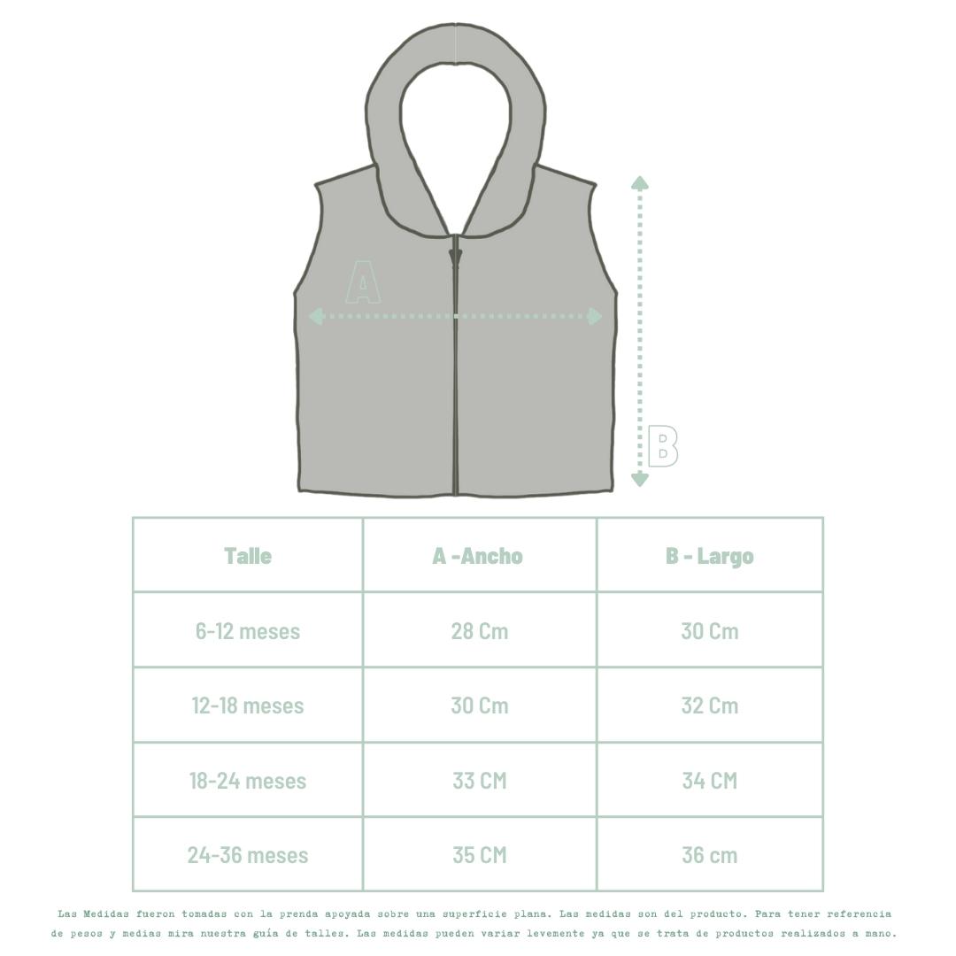 Este modelo esta confeccionado en polar soft, con cierre y capucha. Esta pensado para ir arriba de algo más de abrigo, como ser un buzo.