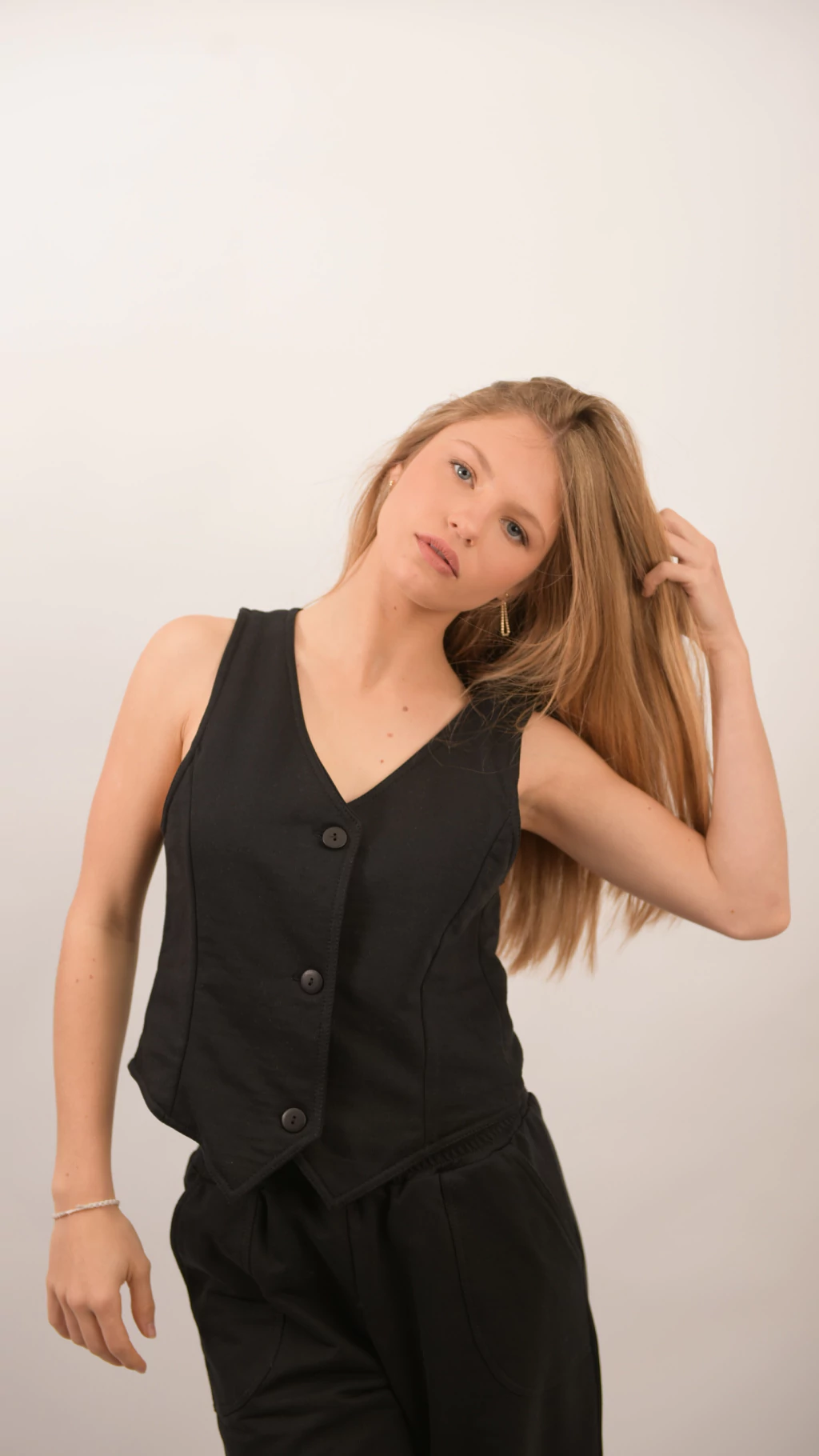 Chaleco corte sastrero confeccionado en rústico de algodón/poliester.Totalmente forrado en doble telaBotones a tono delanteros--Medidas:Talle M: Busto 92cm // Cintura: 86cm // Largo: 52cmTalle L: Busto 105cm // Cintura: 96cm // Largo: 52cmTalle XL: Busto 114cm // Cintura: 112cm // Largo: 52cm