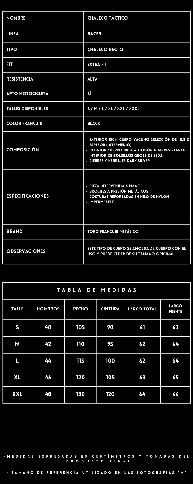 Chaleco fit con bolsillos en cuero vacuno, altamente resistente. Con detalles herrajes metálicos en Siver Black y costuras reforzadas.