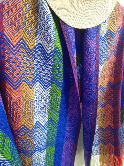 Chal / Pashmina NorteñaHilo de CachemiraColor: MulticolorModelo: tilcareñoTramado en linea norteñaMedidas:Largo: 1.60 mtsAncho: 55 cmLargo total con flecos: 1.80 mtsNO LAVAR EN LAVARROPAS