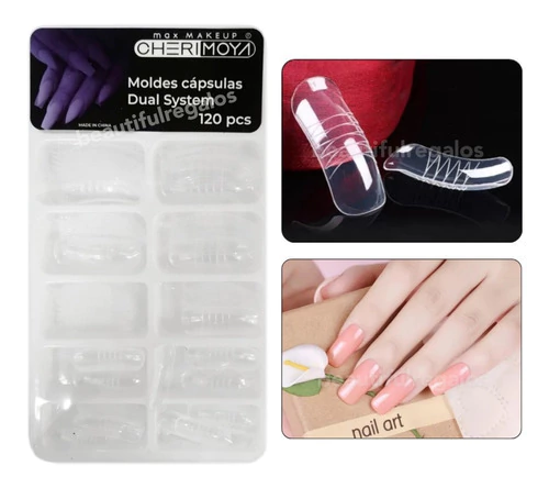 Capsula Dual System X120. Caja De 120 Capsulas Dual para Gel y Acrílico. Modelo AR030031-04 12 tamaños diferentes. Material plástico. Medidas en la segunda foto.