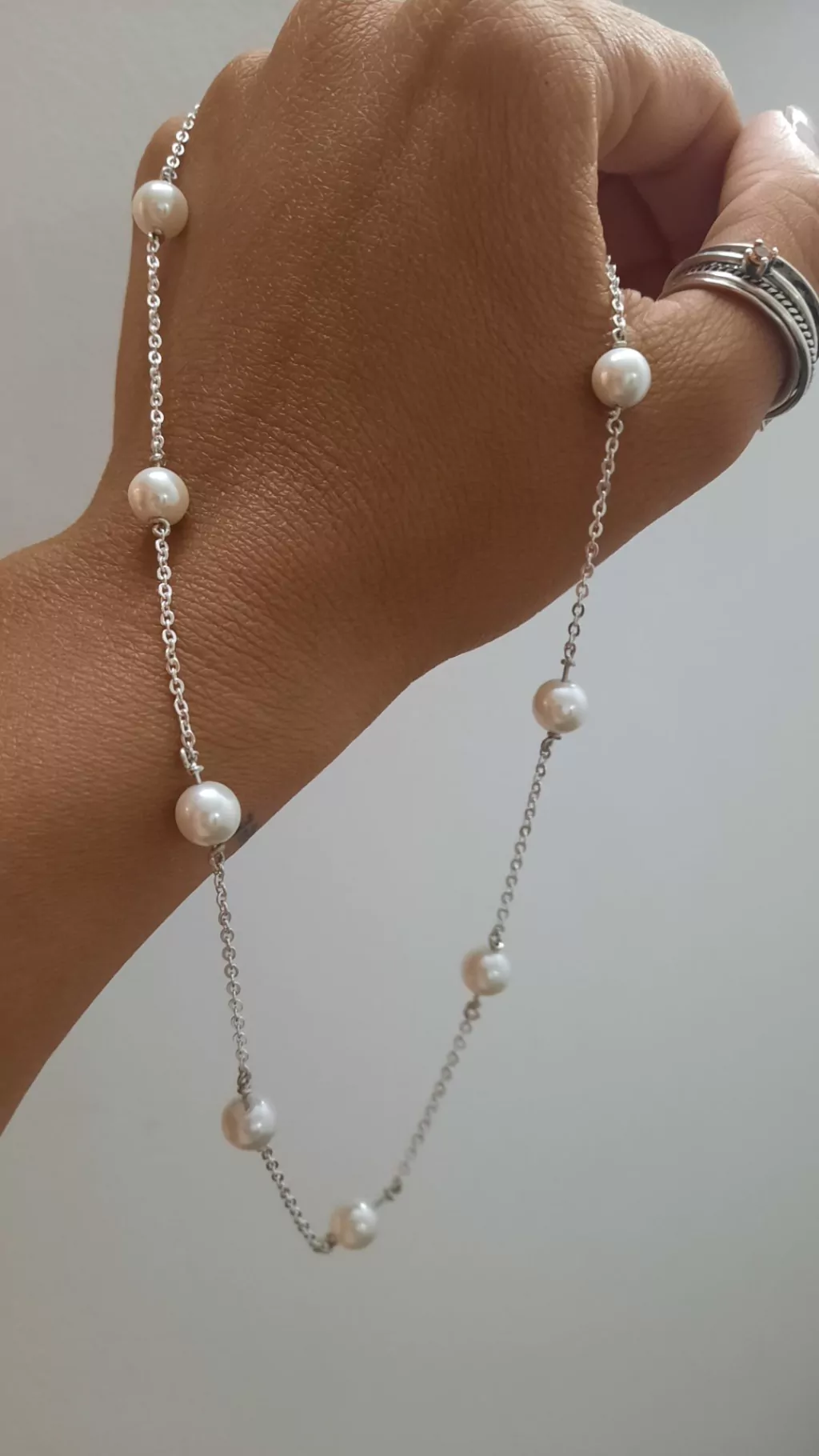 Cadena de plata con perlas. 40 cm con cadenita de alargue