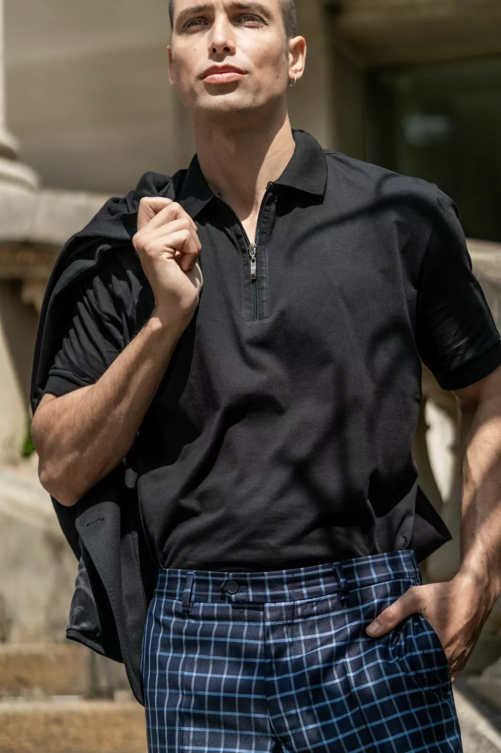 Chomba de algodón moderna con 1/2 cierre de metal.