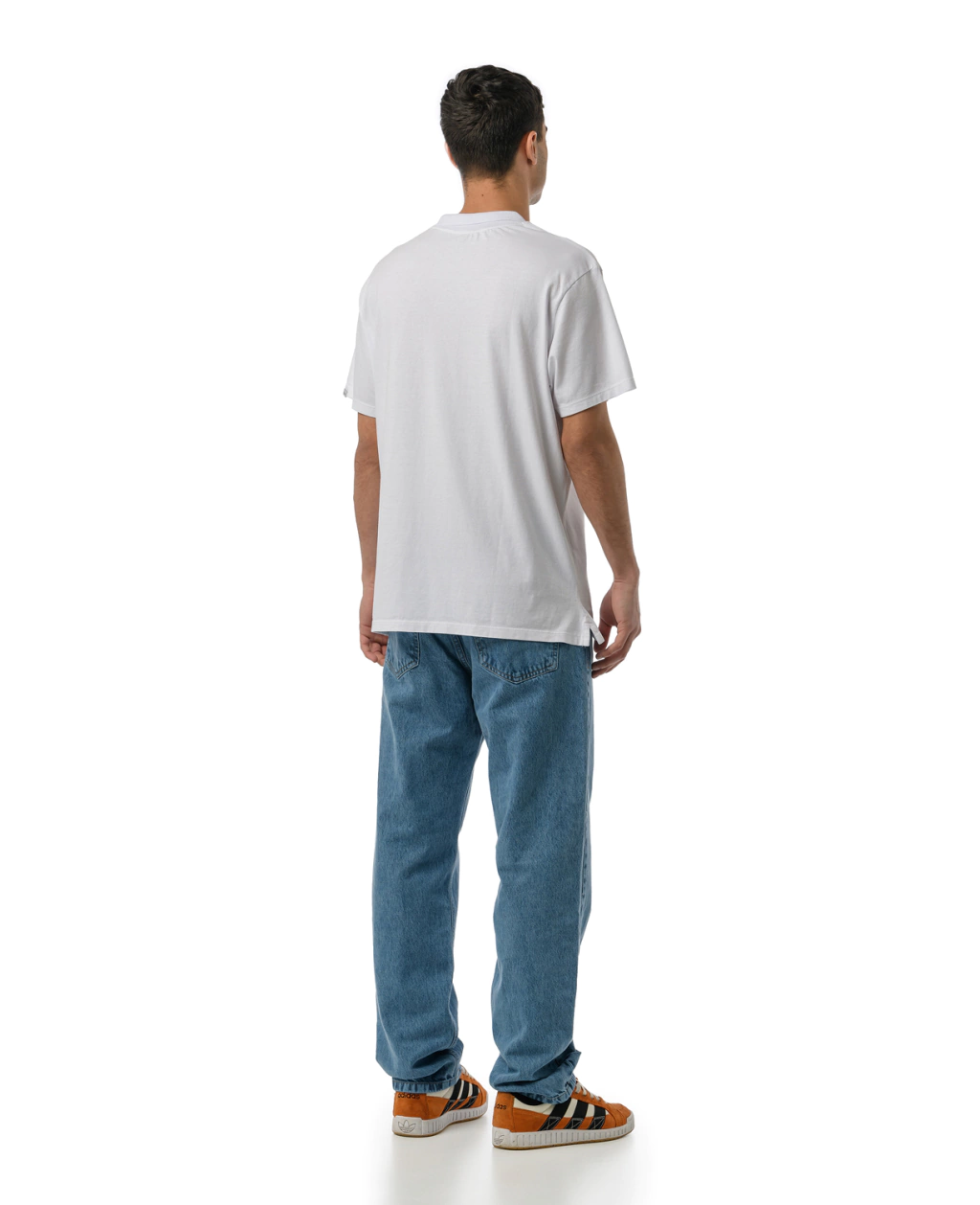 Chomba regular confeccionada en tela de punto liviano 24/1, 100% algodon lavado. Con grifa en la manga. Posee cuello tejido y mangas cortas.Referencia modelo: Altura 1,87 mts , Talle: L