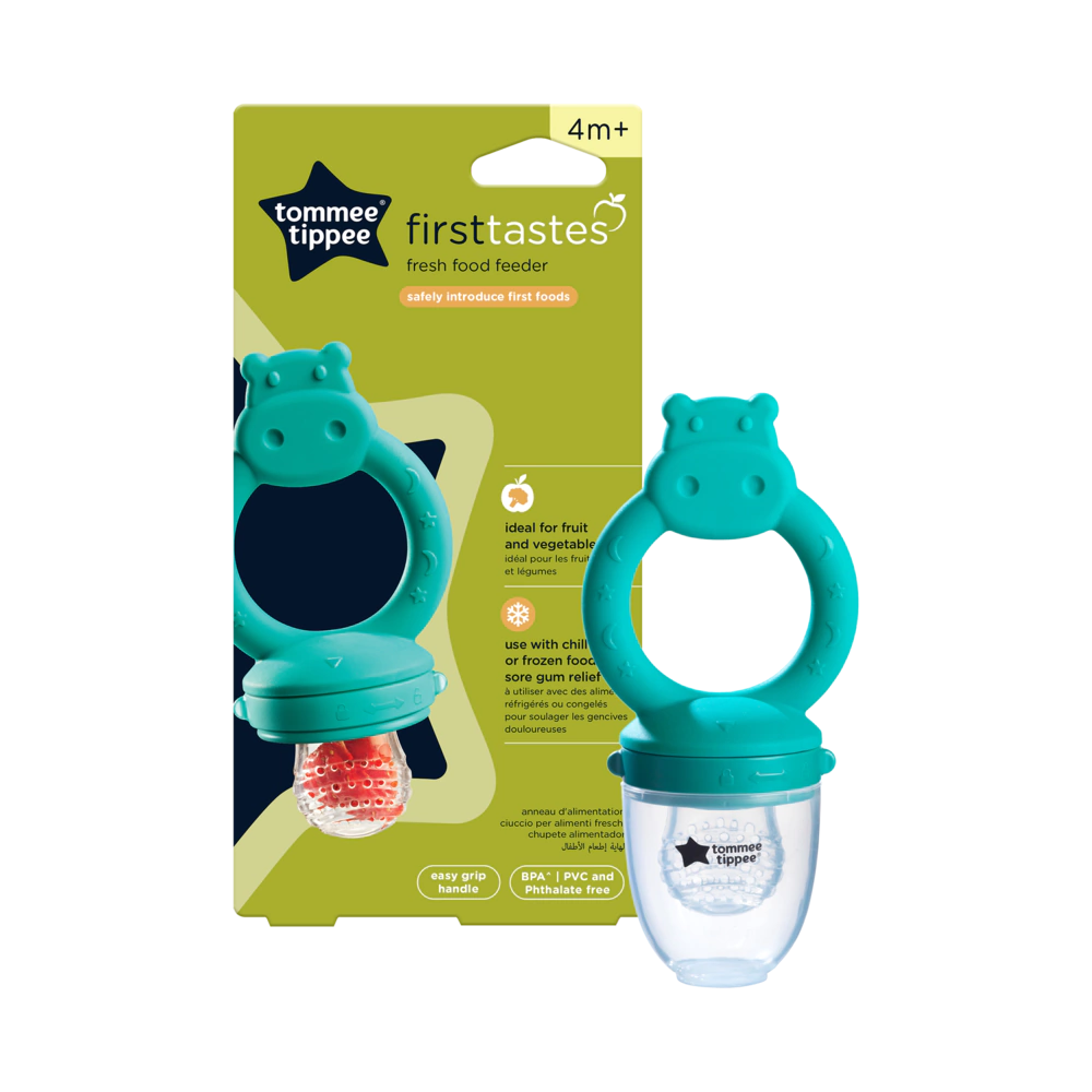 A partir de los cuatro meses aproximadamente, tu pequeño puede empezar a sentir molestias en las encías y tratar de calmarlas como pueda. El Fresh Food Feeder de Tommee Tippee es la solución perfecta. No solo le presentará a su pequeño nuevos sabores antes de que comience el proceso de destete, sino que también ayudará a aliviar la picazón y el dolor en las encías.El alimentador de fruta fresca es realmente fácil de usar. Simplemente gire el anillo de bloqueo para abrirlo, llene la tetina de silicona con cualquier fruta o verdura blanda que desee, gírelo y vuelva a colocarlo y dáselo a su bebé para que lo disfrute.Completa con 52 orificios, la tetina permitirá que las frutas o verduras frescas del interior se filtren lentamente para que puedas introducir los primeros alimentos blandos a tu bebé de forma segura. Con la forma de un hipopótamo feliz, el comedero de frutas tiene un mango ergonómico y antideslizante que es fácil de sostener en cualquier ángulo. Para una tranquilidad total, la función de seguridad del anillo de bloqueo de clic permite a los padres llenar la tetina fácilmente, pero mantiene la comida bajo llave y alejada del bebé. También viene con una tapa higiénica que mantiene el comedero limpio dentro y fuera de casa y lo mantiene en posición vertical.Compuesto por solo tres partes, el dispositivo de destete de Tommee Tippee es seguro para el lavavajillas y para la esterilización por rayos UV y vapor.Está hecho de silicona de calidad alimentaria sin BPA, PVC ni ftalatos, por lo que es completamente seguro para su bebé.