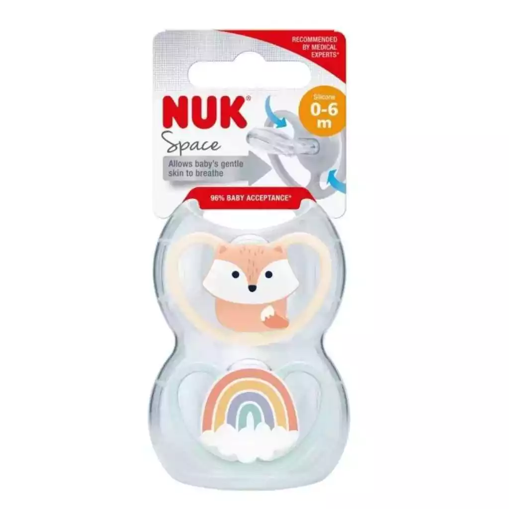 Detalle:-Orificios de ventilación extra-grandes que permiten una máxima circulación de aire y que la piel respire – perfecto para piel sensible del bebé.-Con la mejor tetina Ortodóntica NUK para el desarrollo oral saludable del bebé.-Forma natural basada en el pezón materno durante el amamantamiento, que se adapta perfectamente en la boca cuando el bebé succiona.-Cuello de tetina más delgado y angosto; reduce la presión en la mandíbula y los dientes.-Tetina más plana y suave en la parte inferior: más libertad para los movimientos de succión de la lengua.-Estuche doble apto para transporte y esterilización.-Edad recomendada 0 a 6 meses-Presentación: 2 unidades por estuche