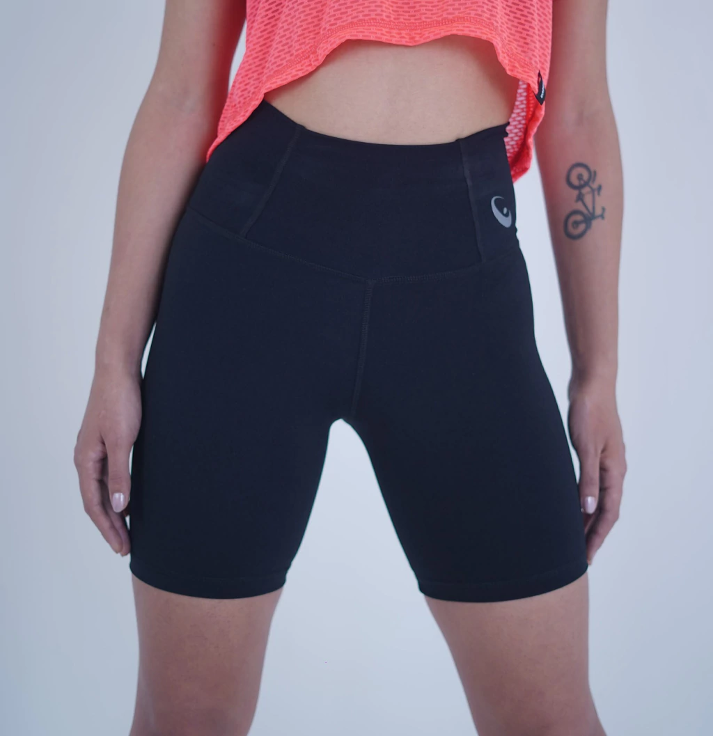 Calza ciclista básica interlock con cintura ancha de compresión