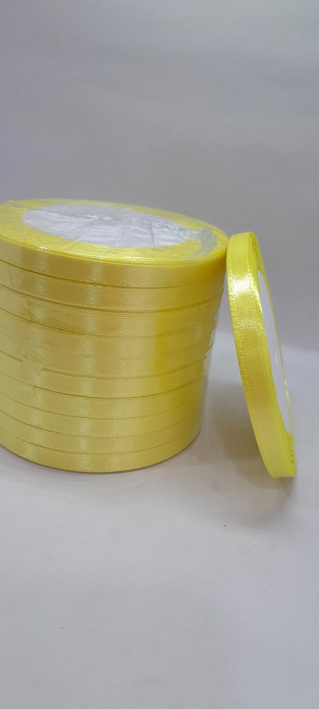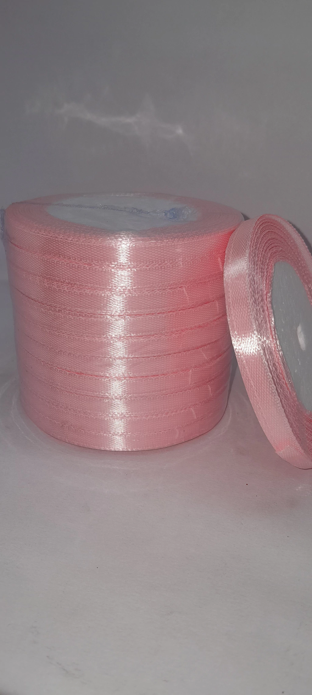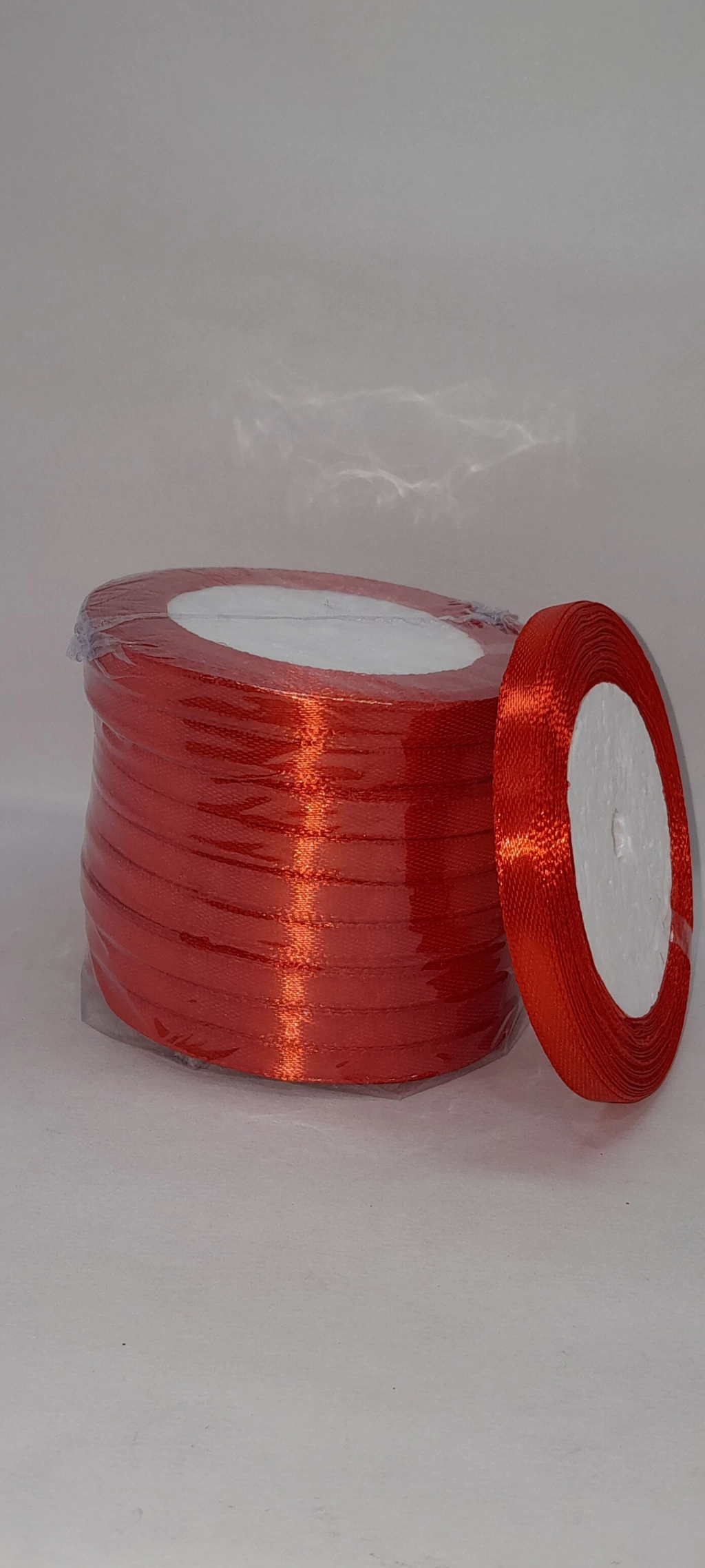 Rollito de cinta de raso.5 mm x 22 metros.Solo los colores de la foto.Precio por 1 rollito.