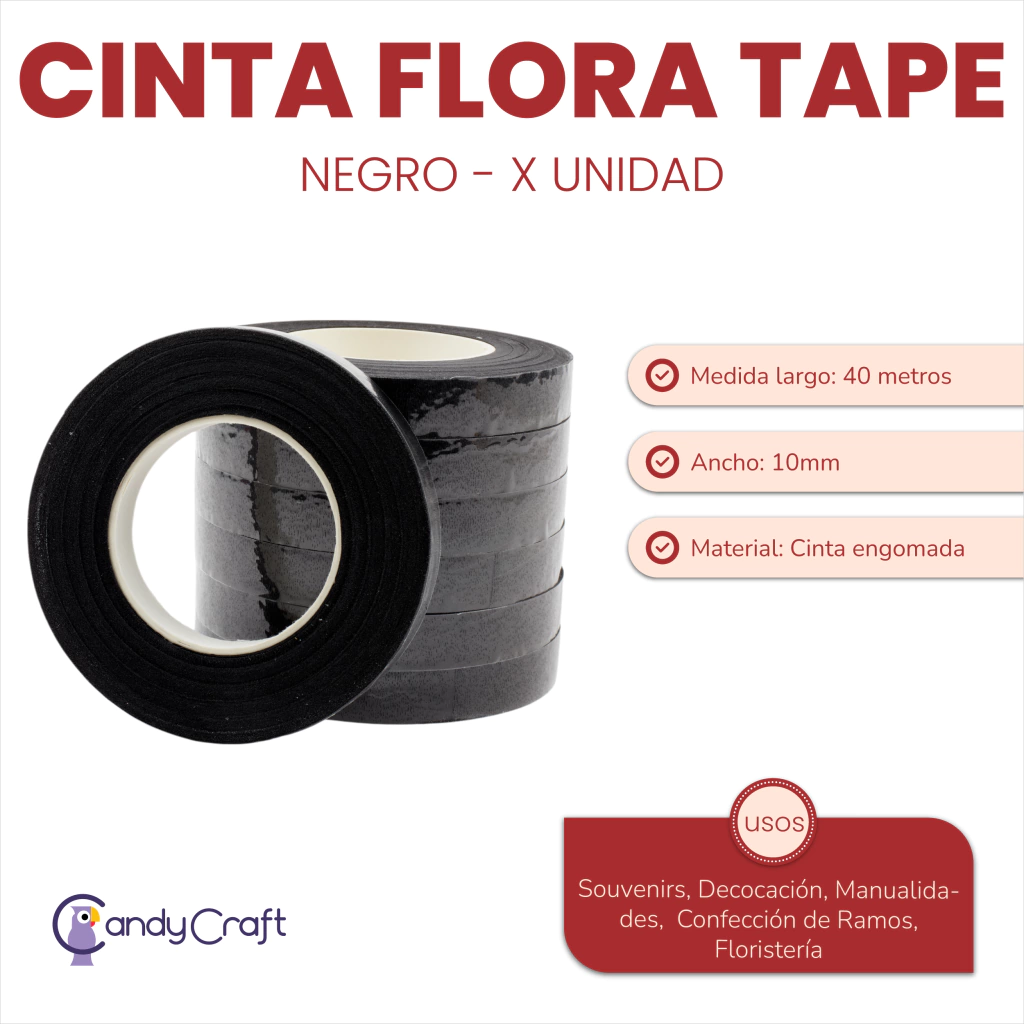 Medida Largo: 40 metros Ancho: 10 mm Marca: Candy Craft Material: Cinta Engomada Uso: Souvenirs, Decocación, Manualidades,  Confección de Ramos, Floristería
