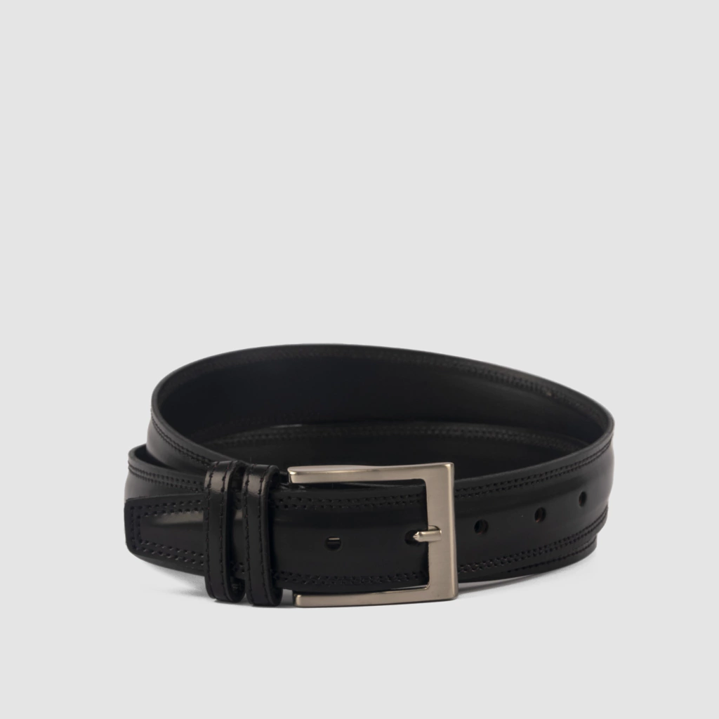 Cinturon de cuero  negro, doble costura 35mm, forrado en cuero vacuno.