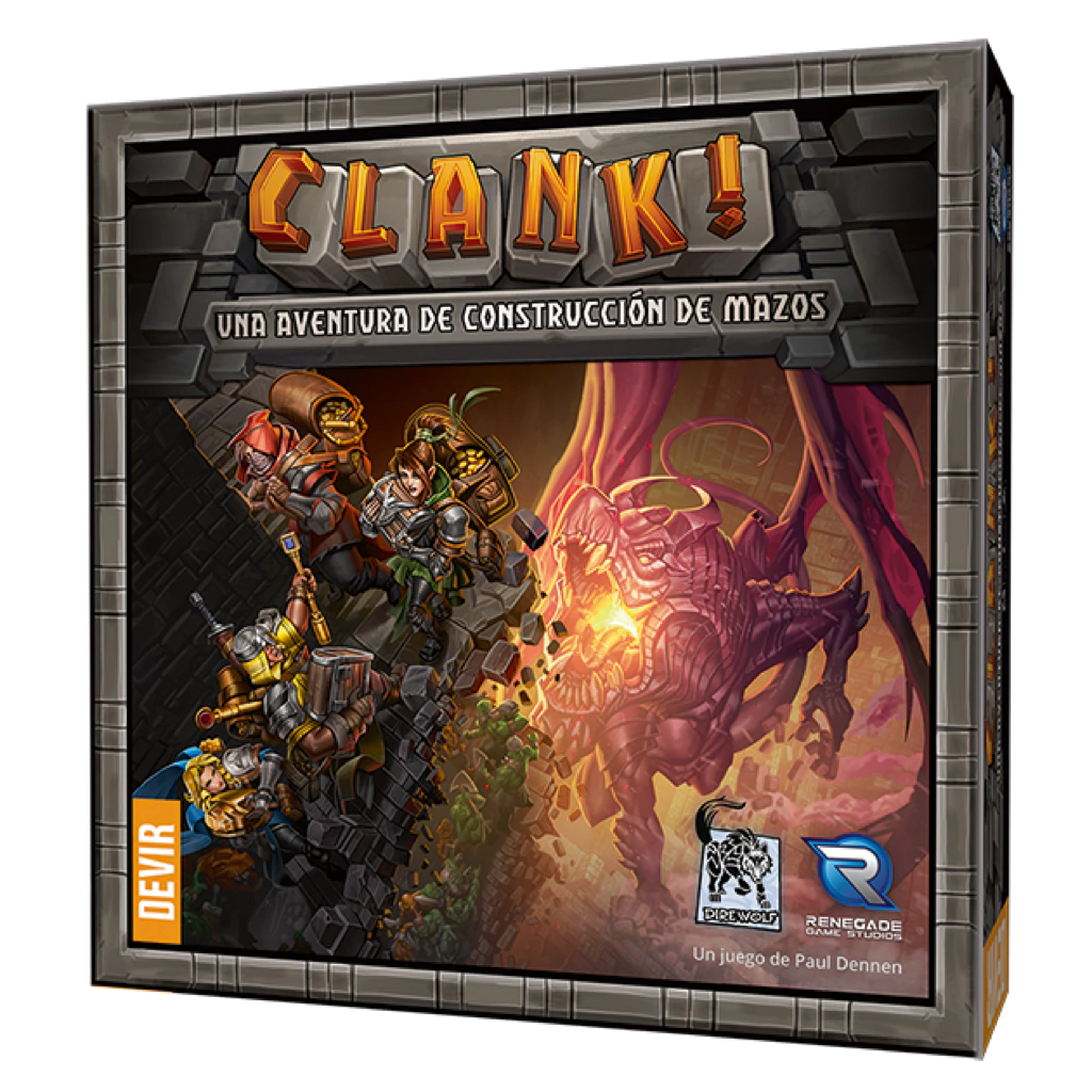 ¡Ábrete camino hacia la aventura en el juego de mesa de construcción de mazo Clank! Entra sigilosamente en la guarida de la montaña de un dragón para robar sus objetos preciosos. Adentra en sus profundidades para encontrar botín más valioso. Adquiere cartas para tu mazo y observa cómo crecen tus habilidades de ladrón. En Clank! debes ser rápido y silencioso. Cada sonido descuidado atrae la atención del dragón, y cada artefacto robado aumenta su ira. ¡Puedes disfrutar de tu botín solo si logras salir con vida de las profundidades! Clank! Es un juego de construcción de mazos. Cada jugador tiene su propio mazo, y construir el tuyo es parte del juego. Comienza cada uno de tus turnos con cinco cartas en tu mano, y las jugarás todas en el orden que elijas. La mayoría de las tarjetas generarán recursos, de los cuales hay tres tipos diferentes: Habilidad , que se usa para adquirir nuevas cartas para tu mazo. Las espadas , que se utilizan para luchar contra los monstruos que infestan la mazmorra. Botas , que se utilizan para moverse por el tablero. Cada vez que adquieres una nueva carta, la pones boca arriba en tu pila de descarte. Siempre que necesites sacar una carta y tu mazo este vacío, barajas tu pila de descarte y la giras boca abajo para formar un nuevo mazo. ¡Con cada shuffle, tus nuevas cartas se convierten en parte de un mazo más grande y mejor! Cada jugador comienza con las mismas cartas en su mazo, pero adquirirá cartas diferentes durante sus turnos. Debido a que las cartas pueden hacer muchas cosas diferentes, el mazo (y la estrategia) de cada jugador serán cada vez más diferentes a medida que se desarrolle el juego.
