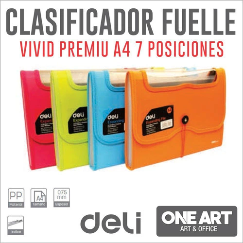 Clasificador con Fuelle Deli Vivid A4 7 Posiciones Colores
