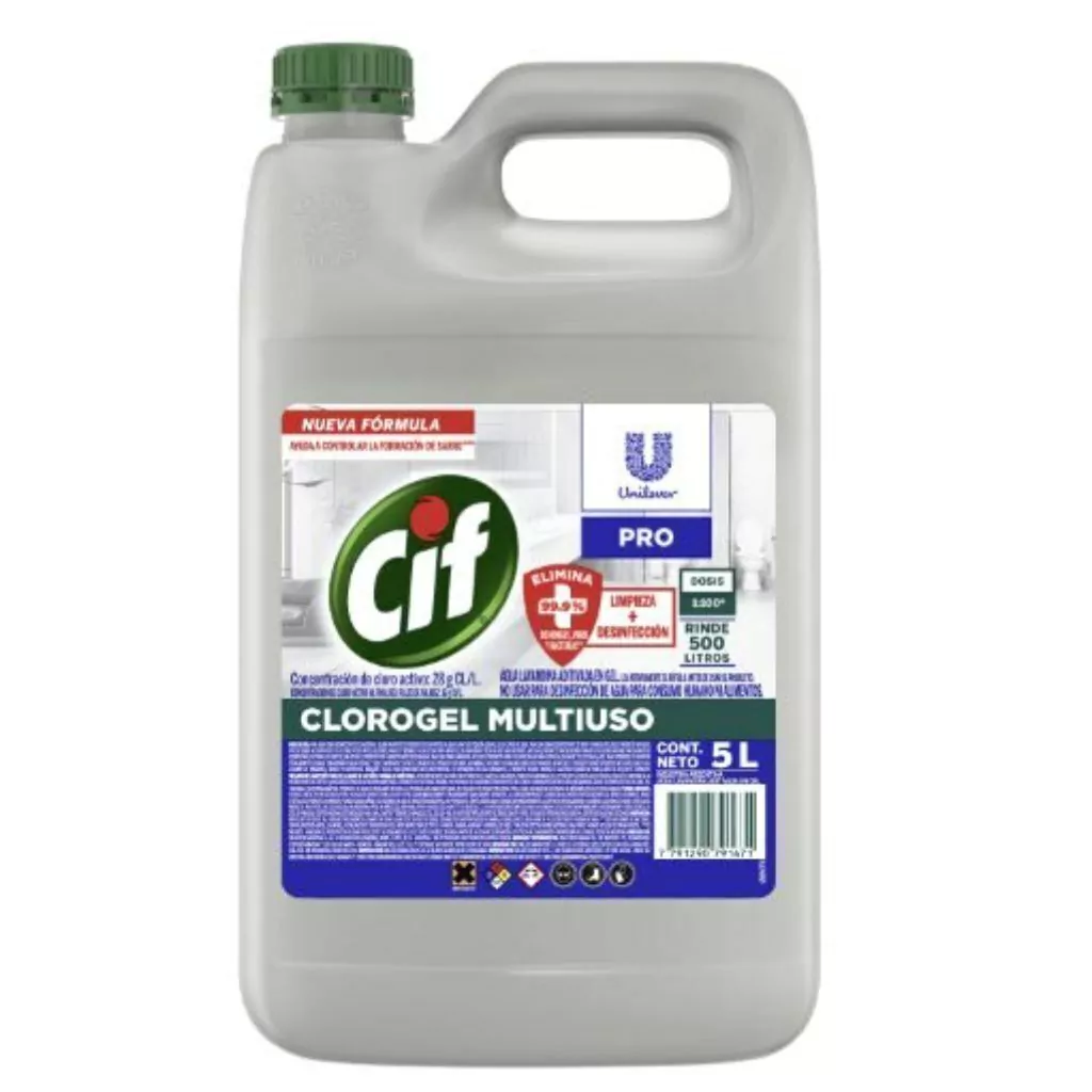 Limpiador líquido multiuso formulado a base de cloro activo. Limpieza y desinfección en un solo producto. Desinfecta superficies como: inodoros, baños, utensilios de cocina, mesadas y pisos. Su fórmula en gel permite una aplicación directa, controlada y efectiva gracias a su viscosidad. Rinde más que la lavandina líquida (en uso directo).Contenido: 5 lts