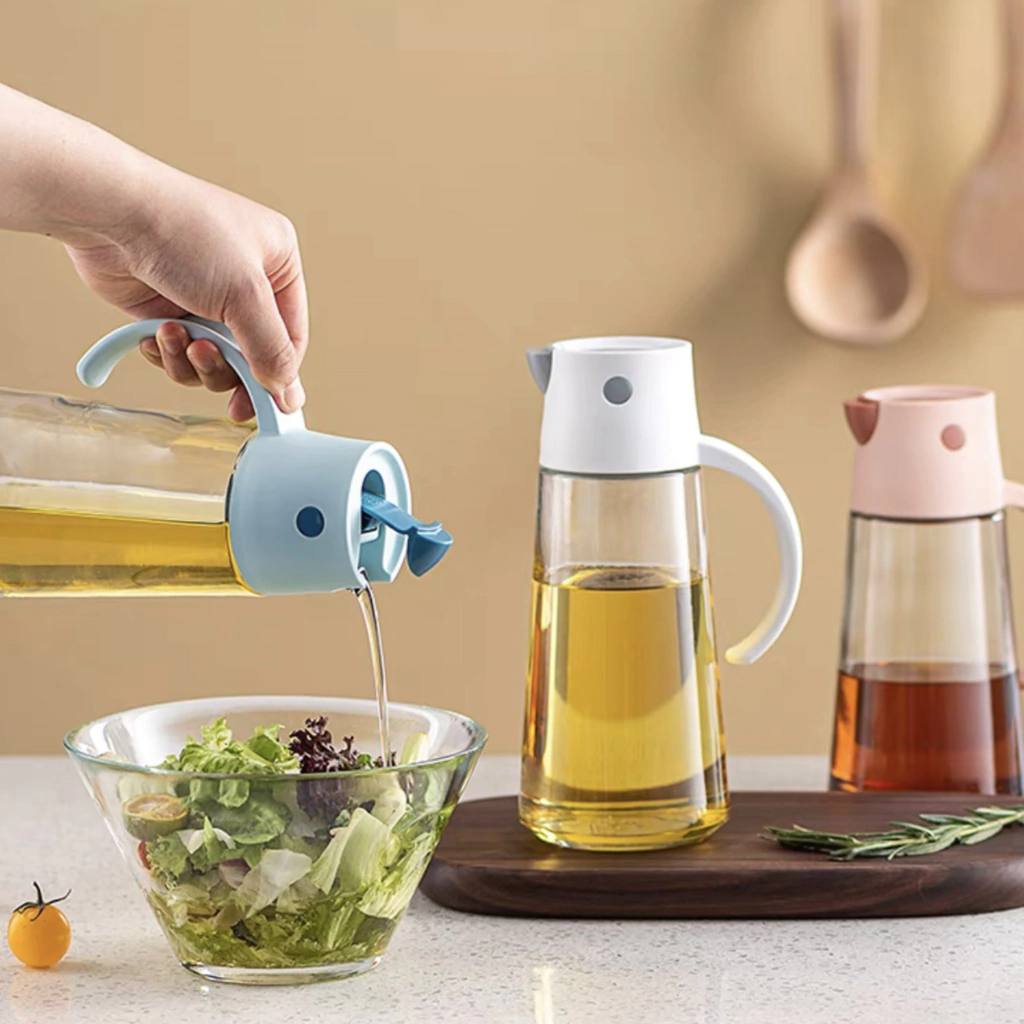 Compañera indiscutida del rociador Oliva! Tiene 550ml de capacidad, es de vidrio y lo maravilloso que tiene esta botellita es que tiene pico automático, el aceite cae al inclinar la botella! 😱😍🤩