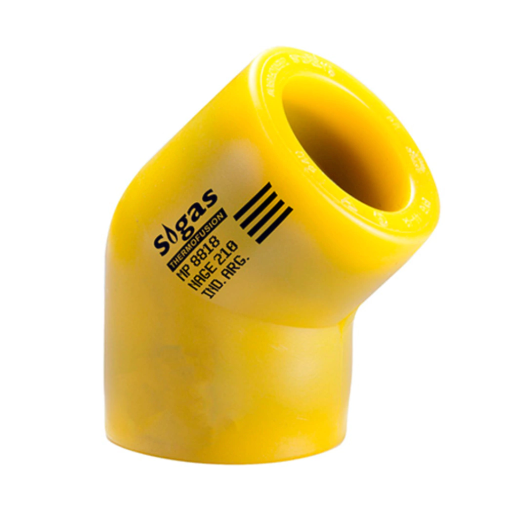 Características- Marca: DEMA.- Linea: SIGAS.- Diametro: 50mm.- Articulo: Codo Fusion Fusion a 45°.- Ambos extremos Fusion de 50 mm.- Termofusion Amarilla para GAS.- Fusion Primera Marca Aprobada por Bureau Veritas.- Especificacion Tecnica NAG E210, res. 3251/2005 ENARGAS.- Solo Compatible con Fusion Sigas.- No permite Aprobacion mezcla de marcas.- En caso de Aprobacion solo se aprueba embutido en pared.- Tuberias Expuestas a Intemperie deben recubrirse con Cinta de Aluminio.- Sigas ofrece Cinta de Aluminio Aprobada.- Evita el repintado y mantenimiento del revestimiento epoxi- Excepcionales ventajas en la instalación.- Tubos y Conexiones con estructura interna de Acero, maxima seguridad.- Tubos y Conexiones con protección Anticorrosiva del Polietileno.- La seguridad de la unión por Thermofusion.- Facilita las modificaciones y reparaciones.- Evita el repintado y mantenimiento del revestimiento epoxi.- Garantía escrita por 50 Años.
