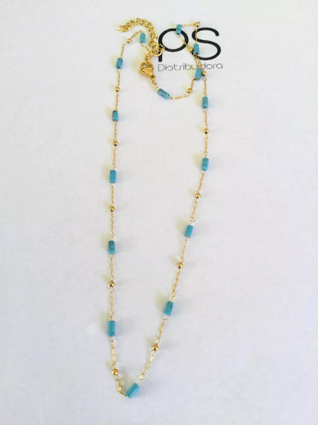 COLGANTE EN ACERO DORADO COMBINADO CON CELESTE