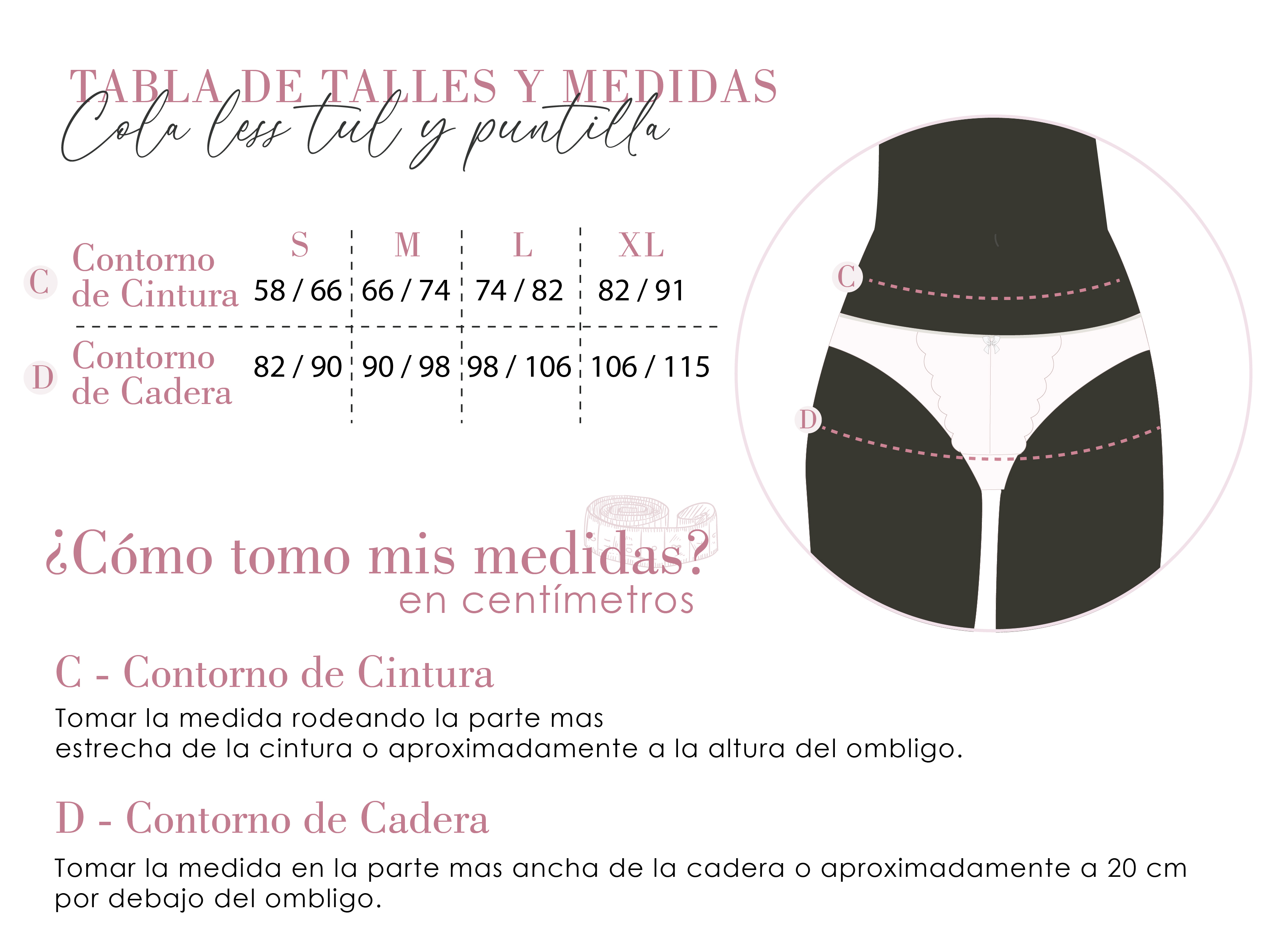 Cola less de tul y puntilla importada. Talle 1 al 4. (Equivale a talles S al XL )