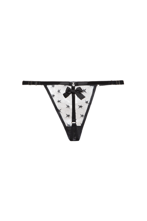 Artículo: Colaless StarsTextil: Microtul con detalle de estrellasComposición: 100% Nylon*La tela estira en ambos sentidosColor: Negro-Argollas y reguladores de metal (color niquel)Breteles regulablesMoños de rasoRefuerzo de algodón*Moños, hilo y elásticos al tono (negro)*La espalda de la bombacha es super colaless! Tiene solo elástico y un moño en la parte trasera!-La colaless viene en tres talles (S - M - L)*En la foto la modelo usa talle S