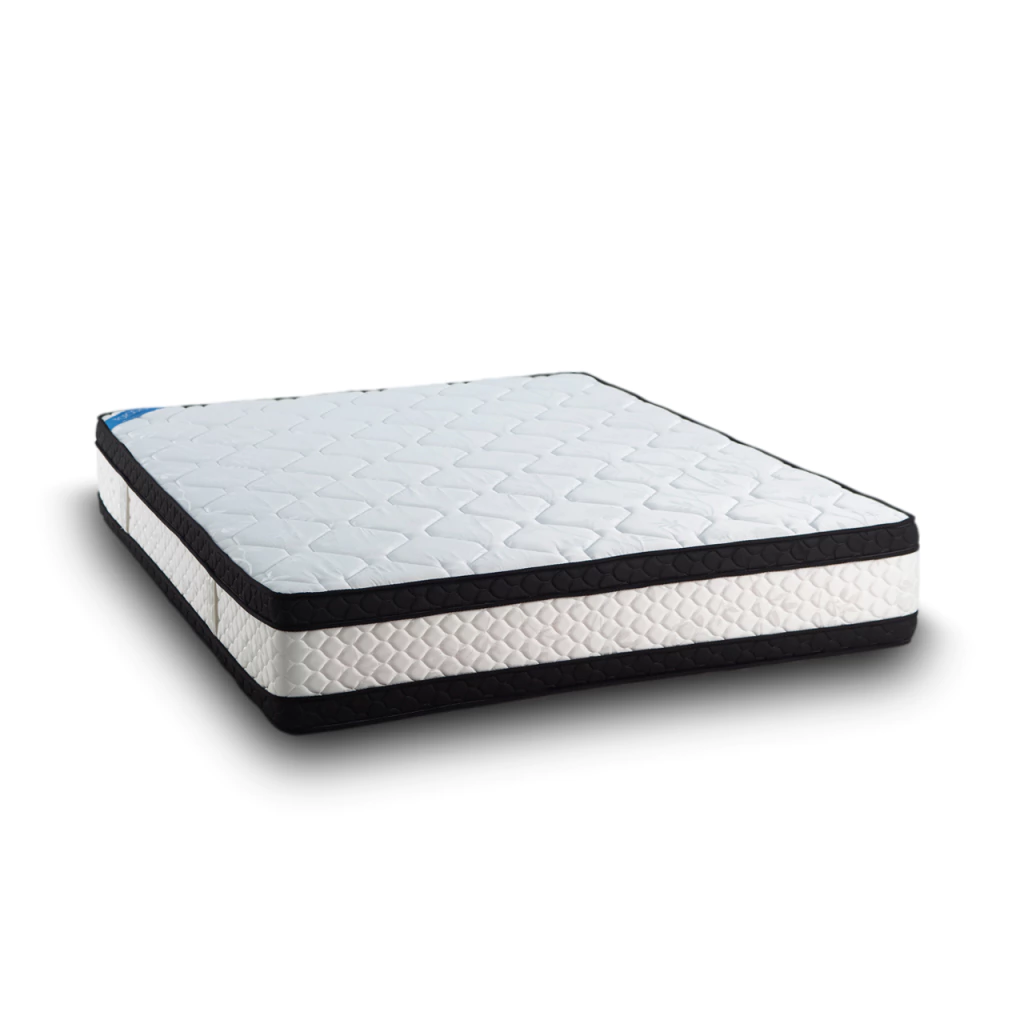 Su interior cuenta con resortes bicónicos de acero templado y doble pillow fabricado en espuma de poliuretano Topacio D30 de alta presión, que brindan una sensación de mayor suavidad sin perder firmeza. El soporte lumbar fortalecido mejora la postura y proporciona estabilidad adicional en la zona media del cuerpo.