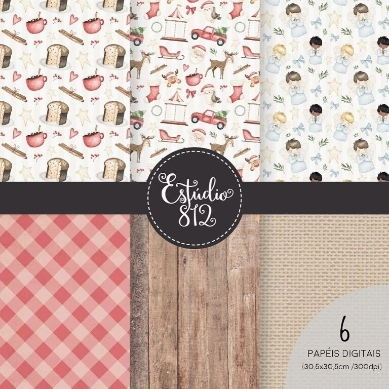 6 papeles y 2 hojas de elementos impresos en papel chambril 180g alta calidad. Tamaño de la hoja: 30x30cm.