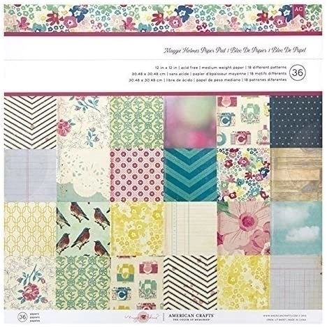 Colección de 36 papeles impresos a una cara, 18 patrones diferentes, de 170 gramos, libres de Acido. Maggie Holmes, American Crafts