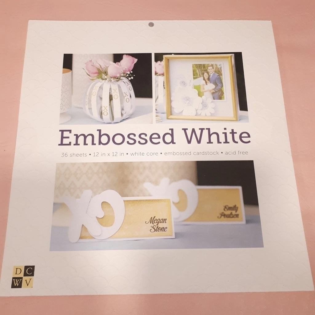 Coleccion de 36 papeles libres de acido, tamaño 30x30 . color blanco. Embossados . con una textura impecable y super variada. teniendo 3 diseños de embossed de cada uno dentro de la coleccion.