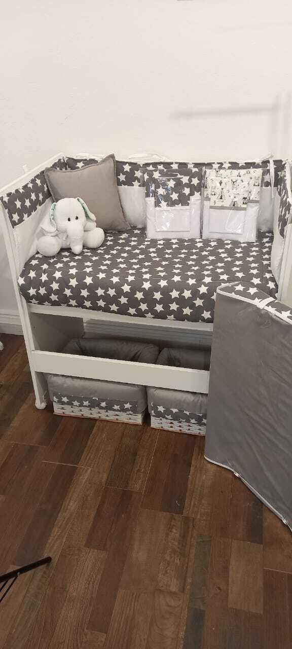 Se diseña A PEDIDO. Elegi las telas y encargalo! PLAZO DE ENTREGA: 30 a 45 diasCuna colecho con rueditas, baranda extraible y convertible en escritorioIncluye:Portatul.Colchon alta densidad 18K (Ancho 50cm - Largo 90 cm - Alto 10 cm)Acolchado a eleccionAccesorios que de venden aparte:SábanasChichoneraBase de madera para cambiadorCambiador fijo con alasAlmohadonesBanderinesCanastas forradasTulMuñecosMedidas:Ancho 55 cm - Largo 95 cm - Alto del piso regulablePlazo de Entrega:Aproximadamente 45 diasFormas de pago:Contado con Transferencia Bancaria de una seña del 50% y saldo al termino del plazo de entregaPLAN AHORA 12Para consultar por diseño,color,estampados disponibles y realizar la compra comunicate con nosotros