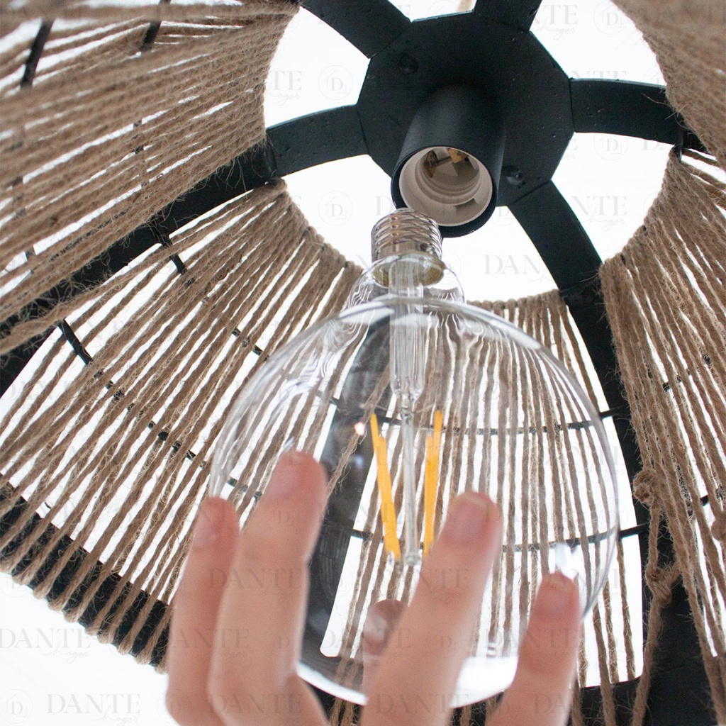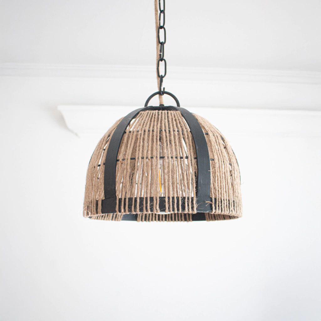 Descripción del producto:La lámpara colgante Bombe fusiona lo rústico y lo moderno, ideal para crear ambientes cálidos y únicos. Con su estructura de hierro y tejido en hilo de arpillera, cada pieza tiene sutiles variaciones propias de su proceso artesanal. Es perfecta para usarse sola o de a dos, ya que su tamaño de 30 x 30 cm logra una composición armónica en cualquier espacio. Además, cuenta con una cadena y un cable textil que refuerzan su diseño natural y auténtico.Características principales:Materiales:Armazón de hierro y trenzado en hilo de arpillera.Medidas aproximadas:Pantalla 30 cm de diámetro x 30 cm de alto. Largo de Cadena 1 metroCable:Cubierto con arpillera para un acabado rústico y uniforme.Estilo:Ideal para ambientes que buscan calidez y personalidad.Un detalle artesanal que iluminá y transformá tus espacios. 💡✨El ser un producto realizado artesanalmente puede tener pequeñas variaciones en color, medidas o detalles constructivos.