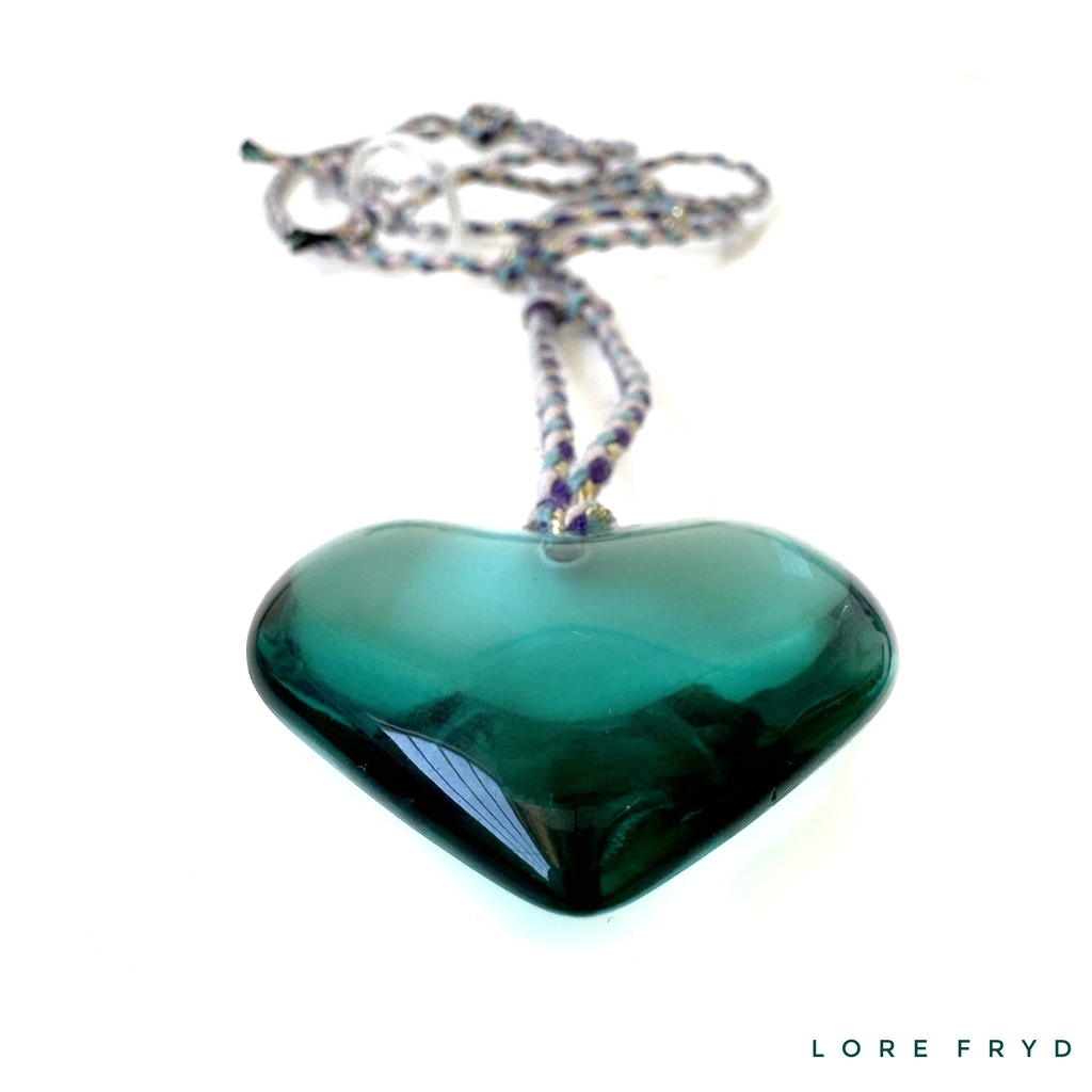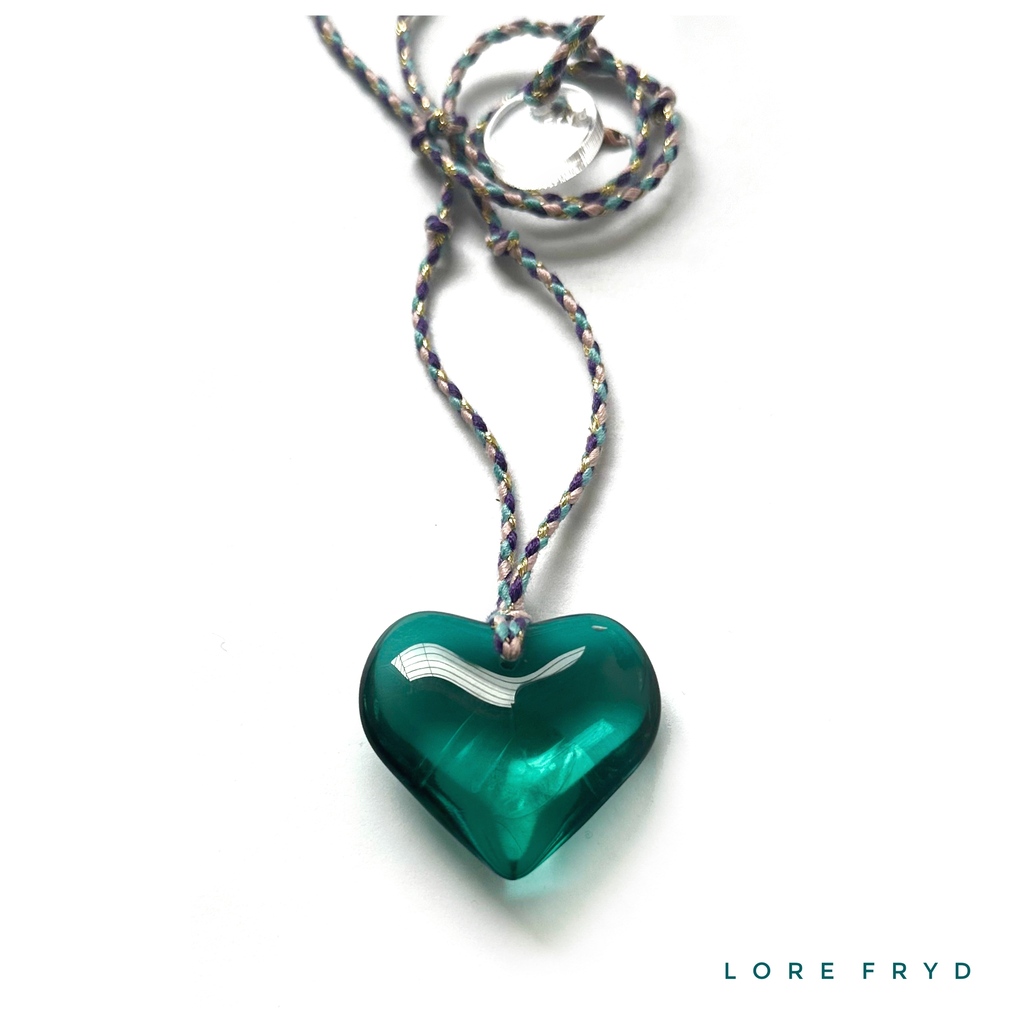 Collar regulable de cordón trenzado de colores con corazón de vidrio checo.
