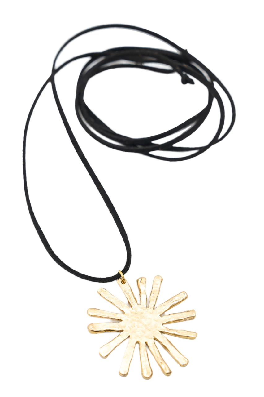 Colgante rústico en bronce. Técnica de texturado de golpe rústico. Te entregamos la pieza de bronce en un cordón de cuero regulable. Podés usar el colgante largo o darle dos vueltas y usarlo ajustado al cuello.