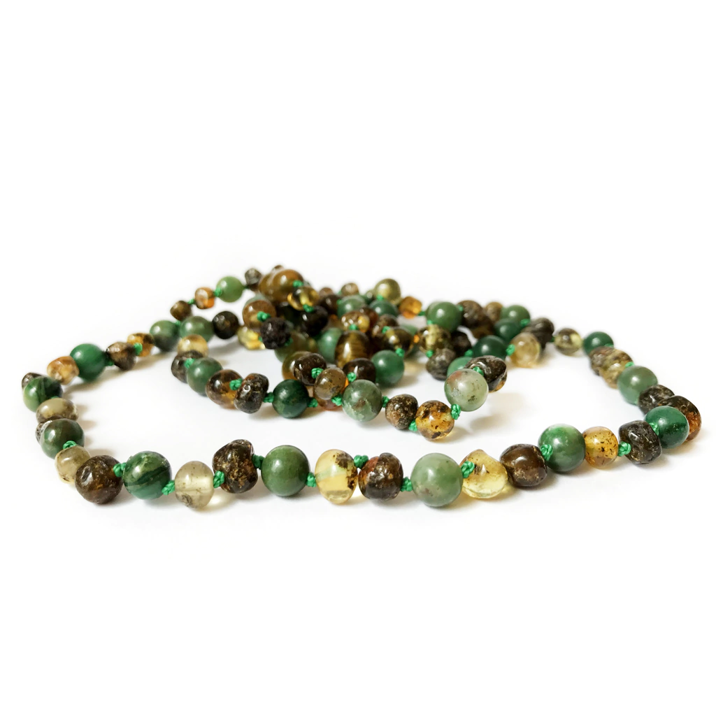 Collar 45 cm ámbar verde y jade africano. Con certificado de autenticidad.