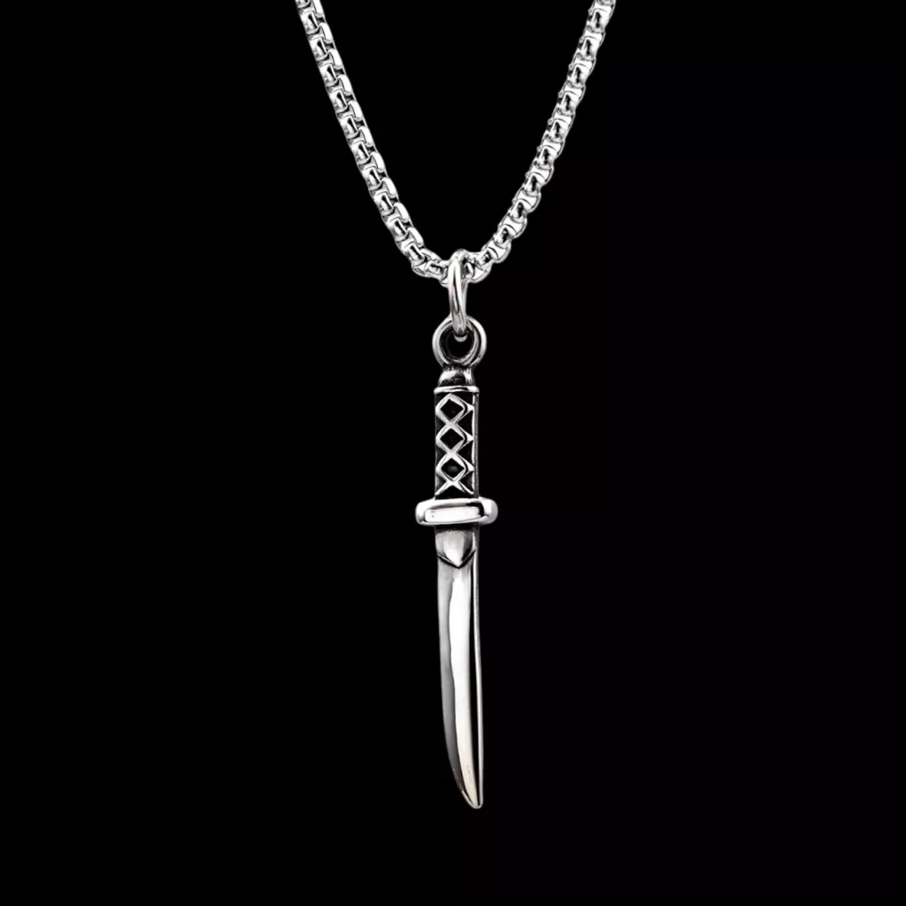 Dije de Espada con cadena incluidaLa espada se asocia con poder y autoridad, representando la capacidad para defenderse y luchar por lo que uno cree. Además, la espada puede simbolizar la justicia, la voluntad de enfrentar desafíos y la determinación para superar obstáculos. En algunos casos, también puede representar la violencia o la guerra, aunque su significado suele estar más relacionado con la defensa y la valentía.CUIDADOS DE LA PIEZA: Recomendamos quitarte las joyas antes de ir a dormir, ducharte o antes de participar de cualquier actividad física. También evitar la exposición a productos químicos, tales como: perfumes, cremas, alcohol, productos de limpieza, cloro, etcétera.AntialérgicoResistente al agua - No decoloraLargo total con dije incluído (cadena cerrada):34 cmMaterial:Acero Inoxidable 316L (Quirúrgico)Largo de la Cadena:Cerrada 30 cm - Abierta extendida 60 cmMedidas del dije solo:4,8 cm x 10,7 cm (Contando el gancho)Medidas de la espada (sin contar el gancho):4,4 cm x 0,7 cmColor:Plateado brillantePeso total del producto:12.3 grIncluye Cajita Kraft de POPPESOBRE EL MATERIALEl acero de grado 316L, llamado "Acero quirúrgico" se ve como el oro blanco o el platino, pero es más fuerte que estos, no se oxidadebido a su alto contenido de cromo y molibdeno combinado con un bajo contenido de carbono,no se oscurece y no produce alergias a la piel, convirtiéndose en un producto noble y fuerte a la vez que se obtienen hermosos diseños en joyería.
