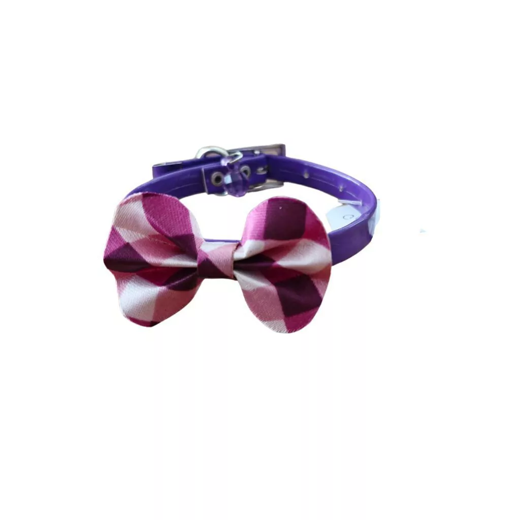 Collar realizado en material simil charol con moño de tela cuadrillé.