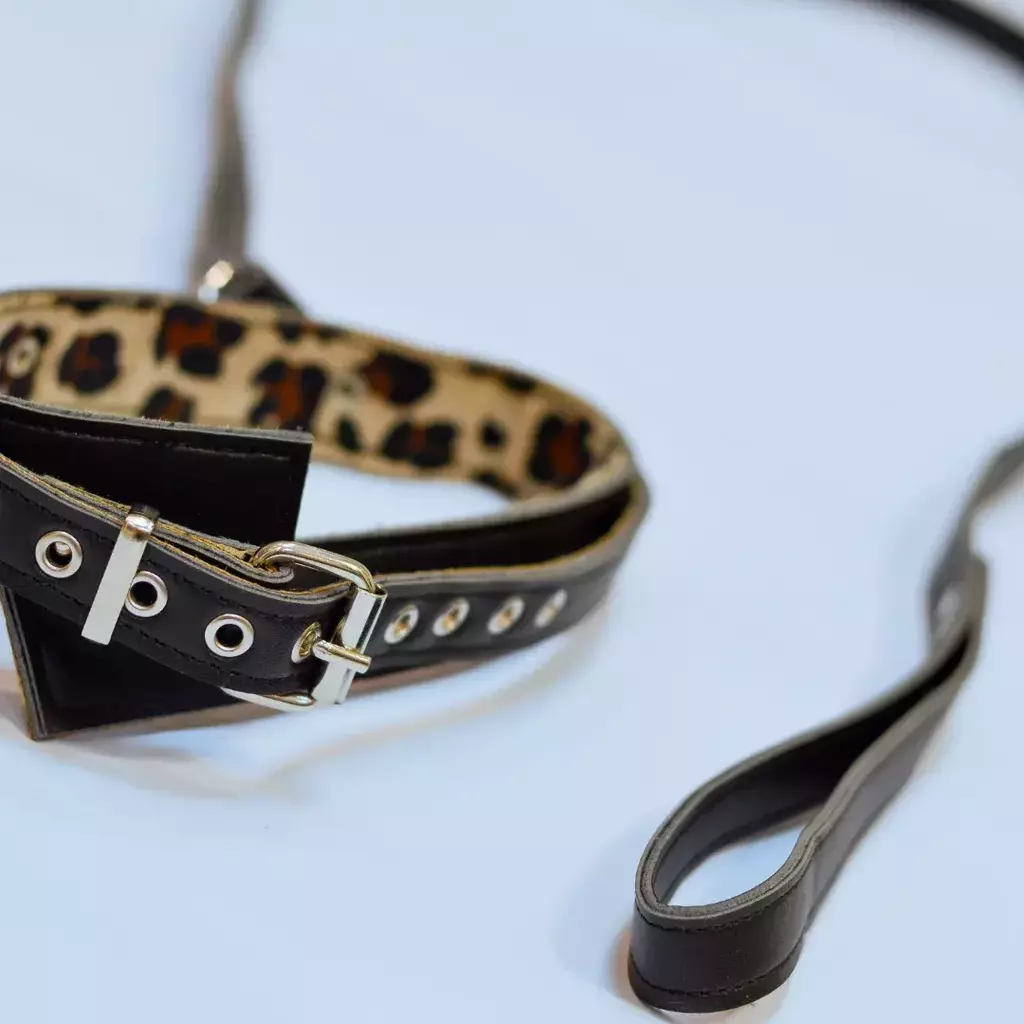 COLLAR CON CORREA DE CUEROCollar con regulador para ajustar al cuello. Correa con agarre ultraresistente, firme y duradera. Para los amantes de los fetiches.Características:Artículo SadoCollar ajustable100% CUEROLargo total : 95cm