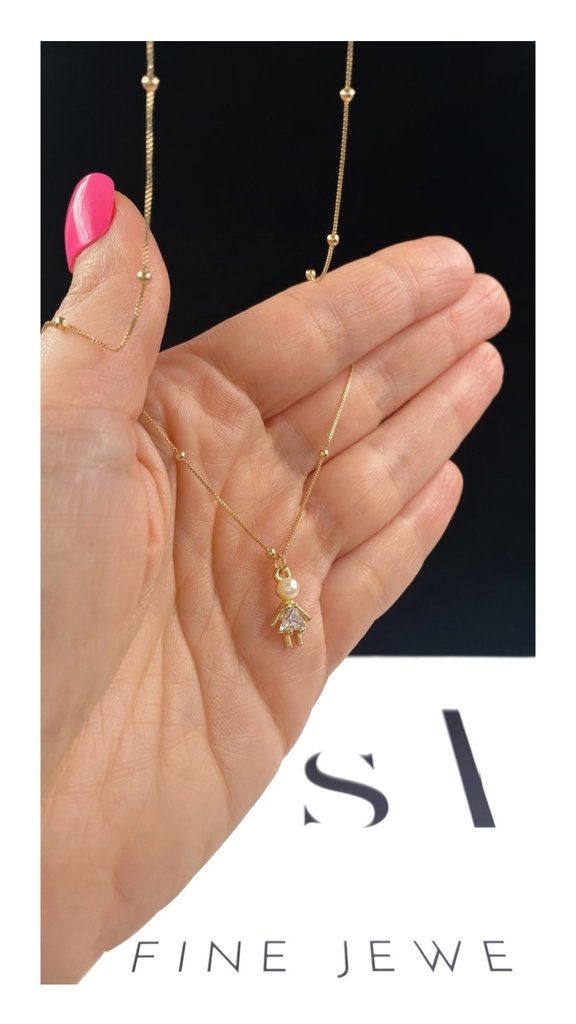 - Collar chapadoen oro 18k.- Zirconias cubic.- Medida aproximada de contorno de cadena 42cm+ 5 cm de sobrante regulable.- Medida aproximada del dije 1,6cm de alto por 0,8 cm de ancho.Este collar de POSH está chapado en oro de 18 quilates de 3 Micras de grosor, dándole una altísima calidad, resistencia y durabilidad.