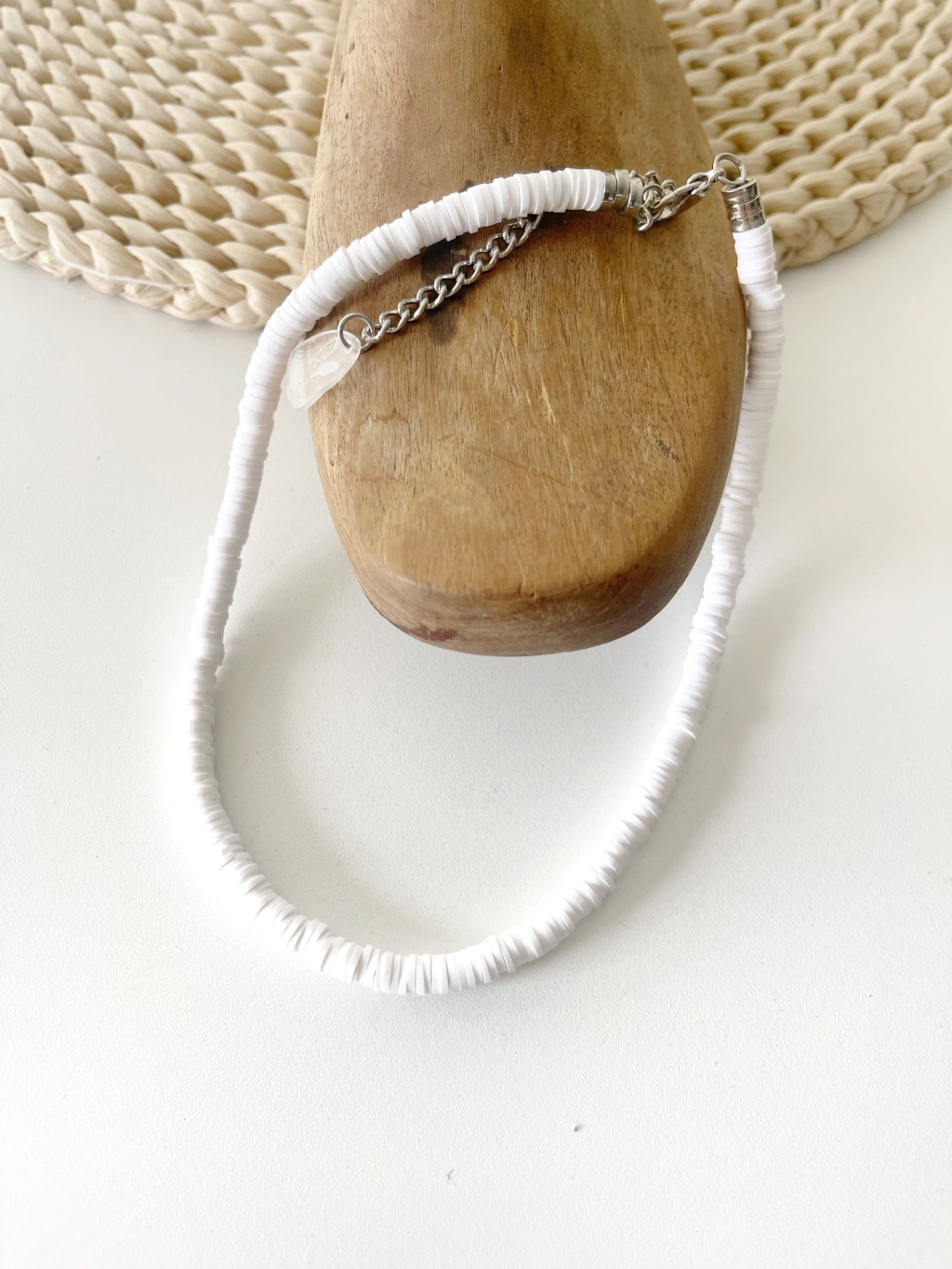 Collar de fimu redondo blanco, ideal para la playa y combinar con otros collares.