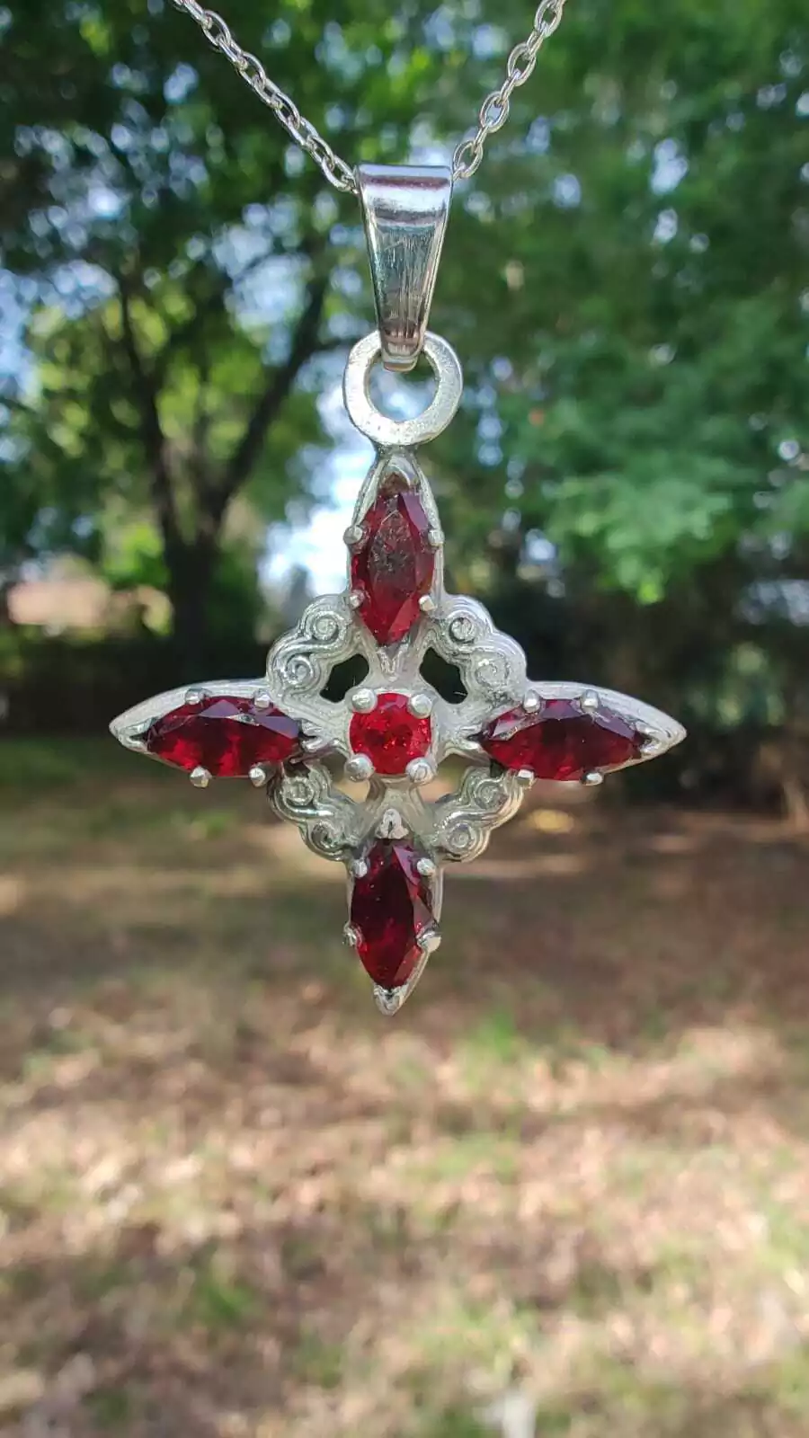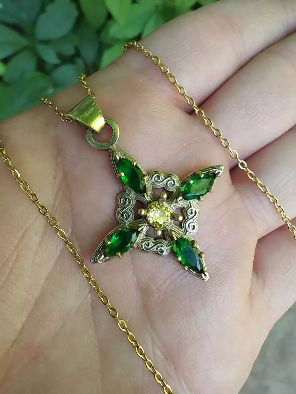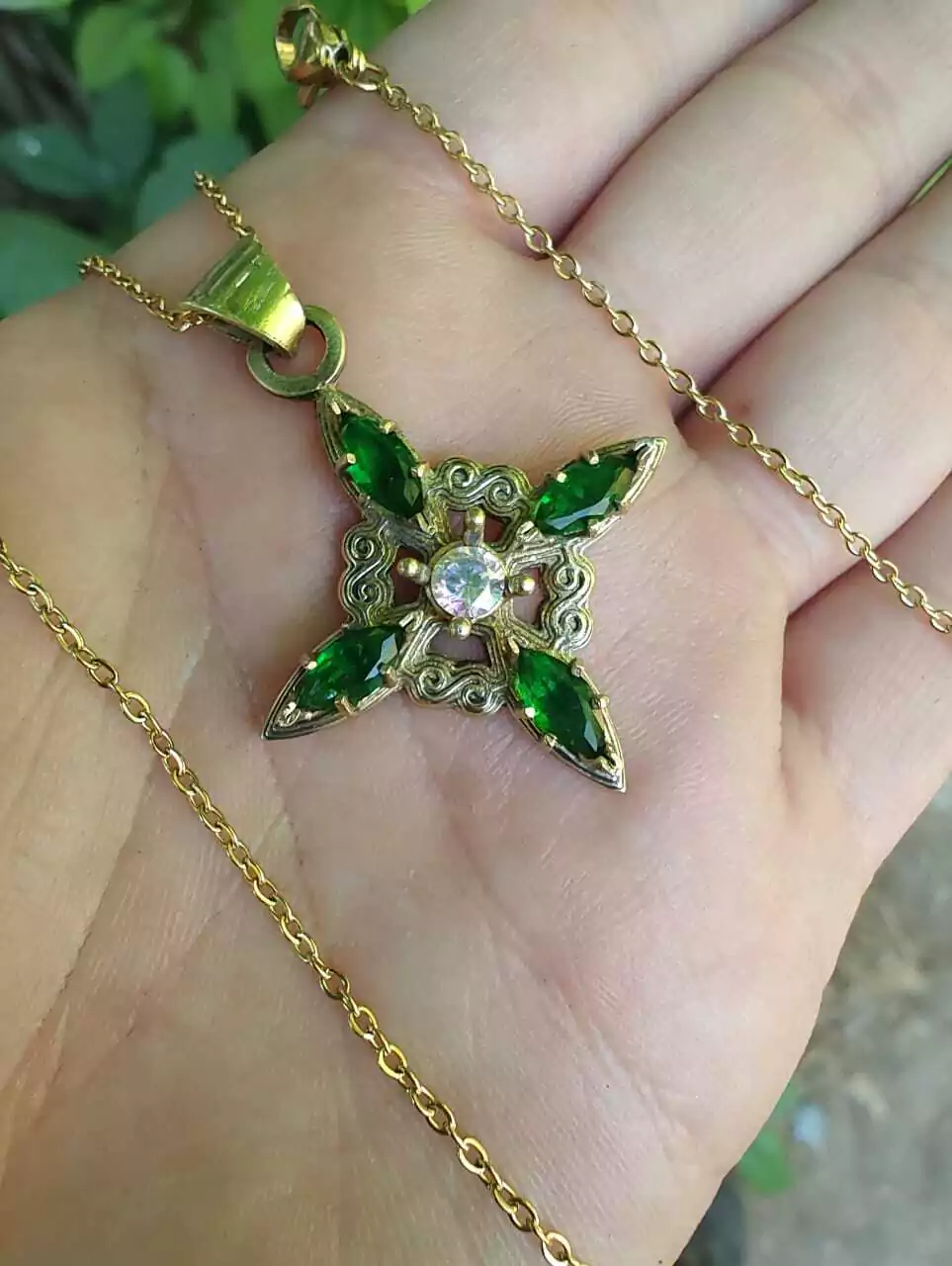 Importante collar Nudo De Brujas con cinco Zirconias Cúbicas, el modelo principal presenta cuatro cristales Navet en color Amatista y un Brillante central Rosa de Francia. Dije elaborado en Plata Alemana / Alpaca o Bronce y también disponible en Plata 925 para su elaboración (otra publicación). Cadena Tourbillon de Acero Quirúrgico. Puede personalizar la pieza en las opciones disponibles de variantes, tanto colores de piedras como material del metal y cadena.Medidas: 4cm + pasa cadena.Cadena Tourbillon de 45cm o 60cm. Especificar al momento de finalizar su compra en el área de "notas".Cadenita rolo oval espejada de 45cm bañada en Oro para las versiones de Bronce (doradas).El nudo de las brujas es un legendario amuleto de protección. Está asociado con la capacidad de proteger o amarrar a tus seres queridos. En la antigüedad este nudo era solo para protección.