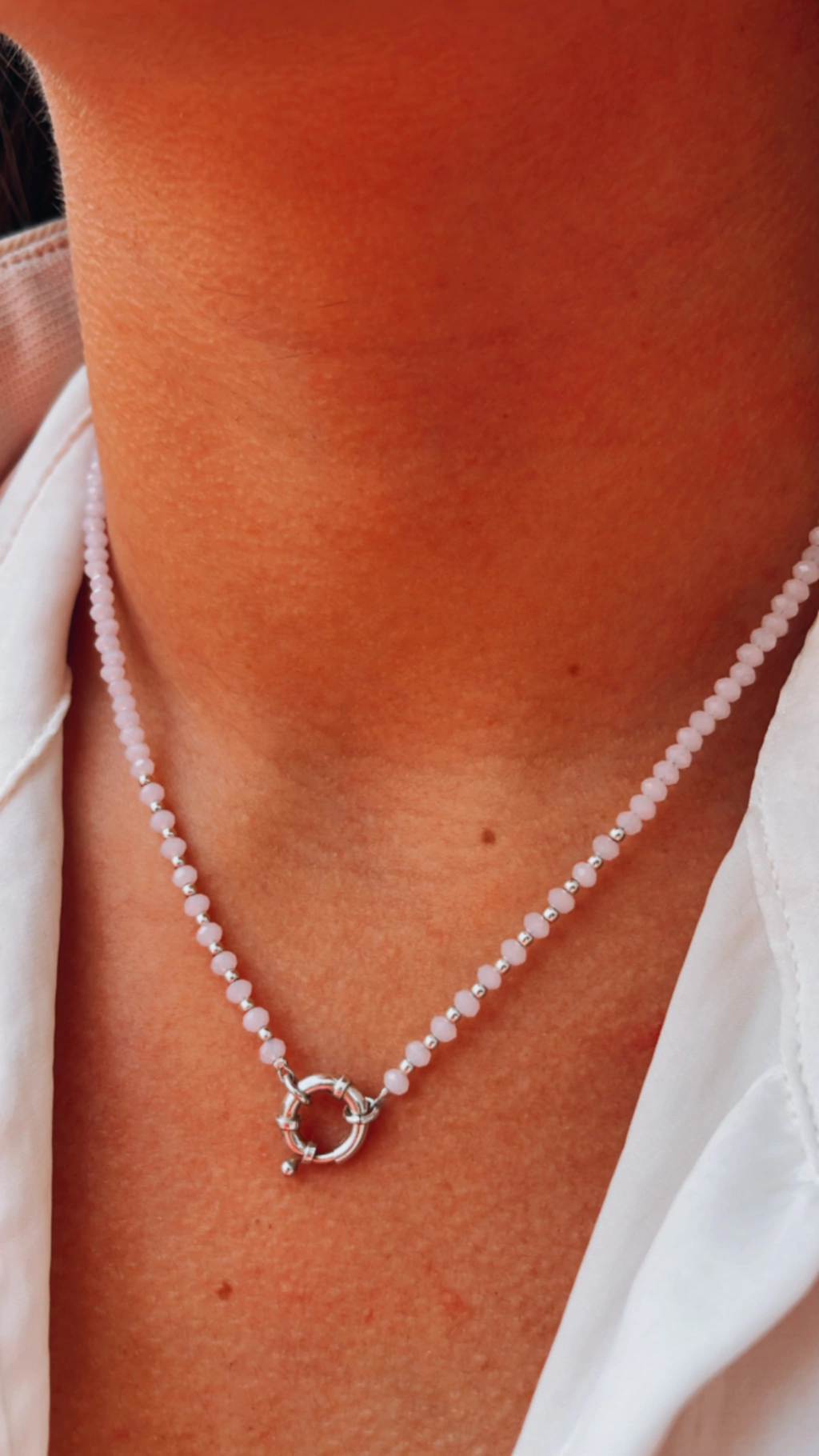 Plata 925 con cristales rosa bebe + bolitas + cierre marinero