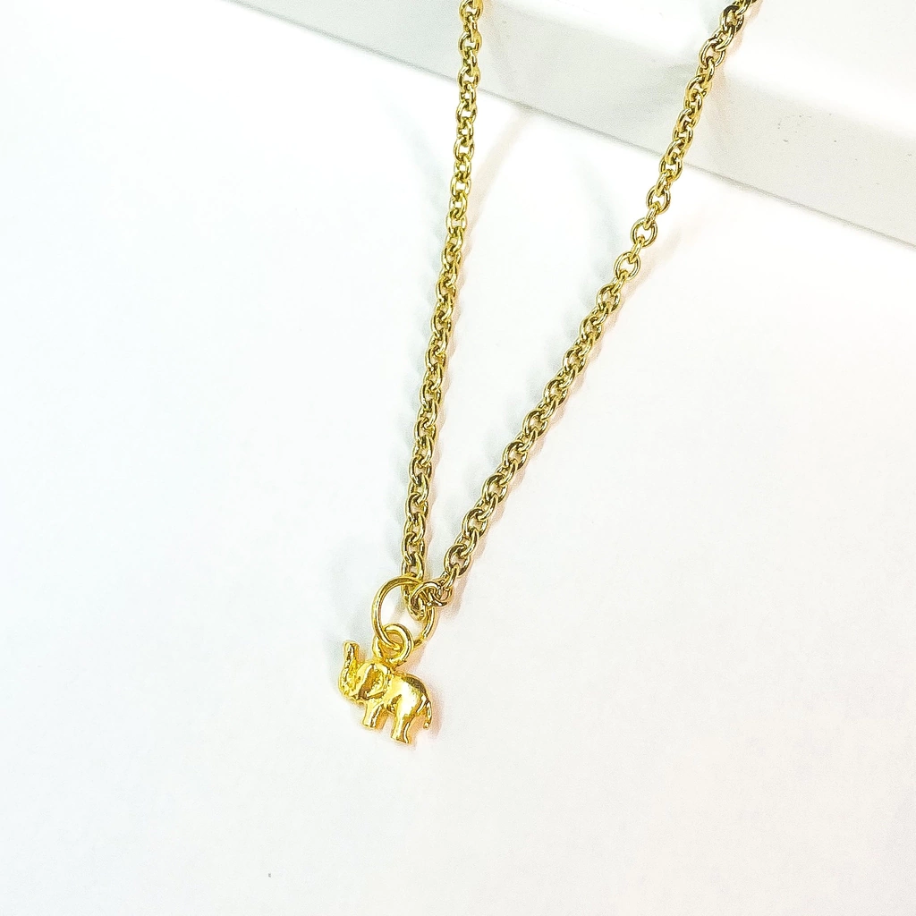 Material:Collar de acero quirúrgico dorado con dije en forma de elefante enchapado en oro.Tamaño:40 cmColor: DoradoUnidades: 1