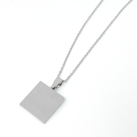 Collar de acero quirúrgico con dije en forma cuadricular. La cadena mide 60 cm.Esta temporada se vienen los collares más largos para poder armar un mix y que los collares sean los protagonistas de tu look.
