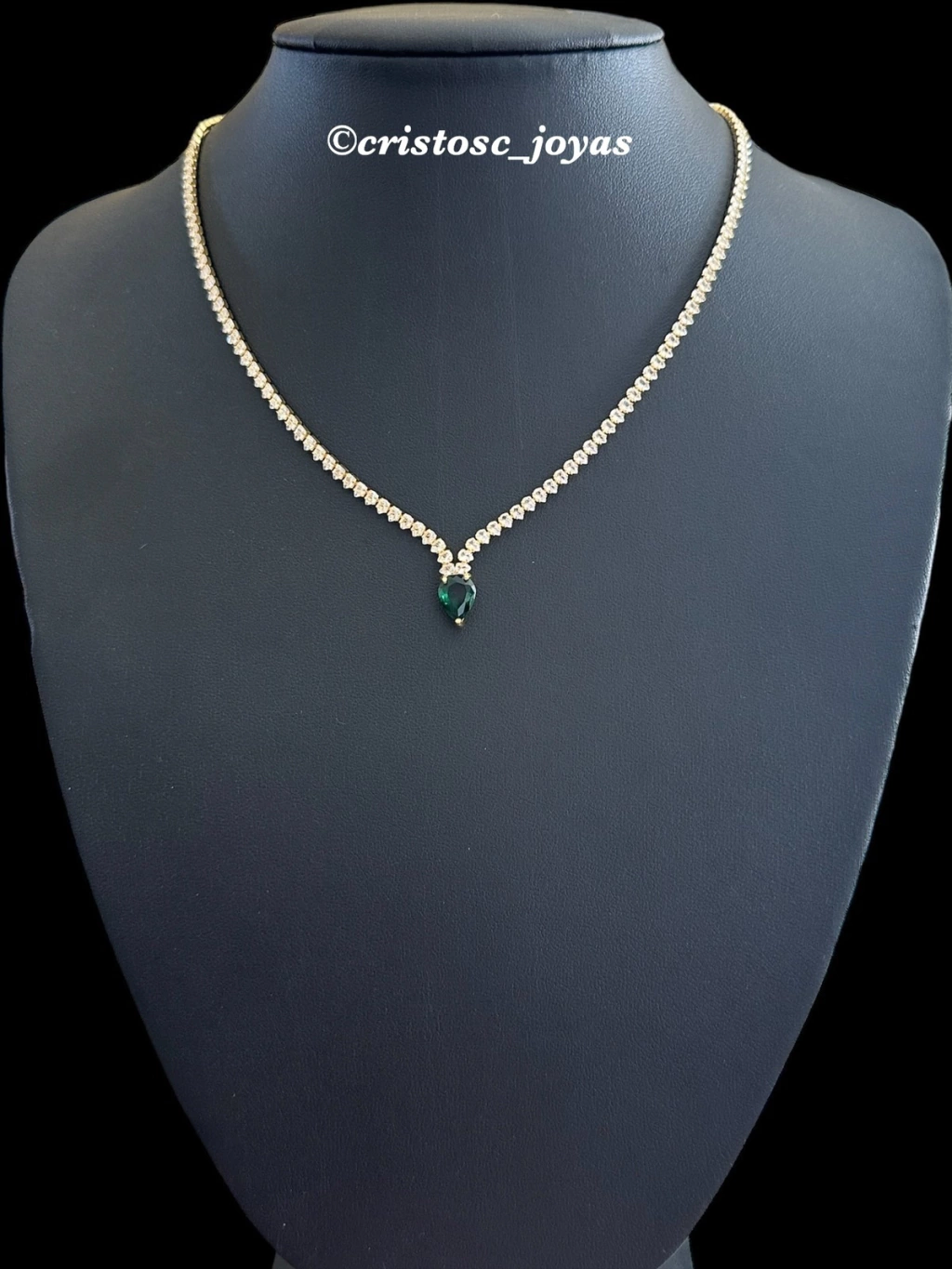Gargantilla de cristal en forma de lágrima, bañada en oro.