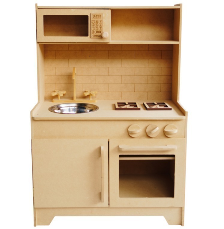 Cocina y heladera Pocket . En color madera natural .