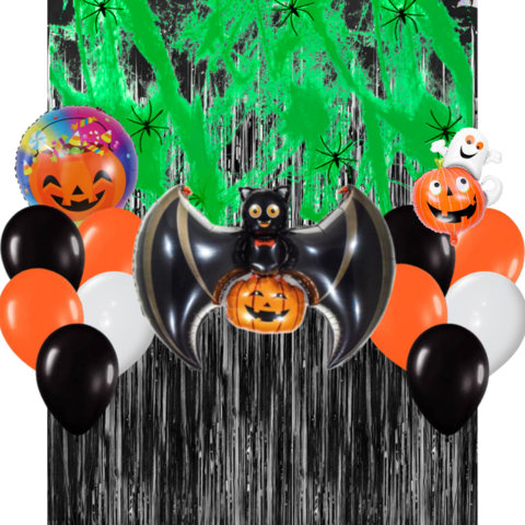 Combo Cumpleaños Globos Temática Halloween Verde Negro